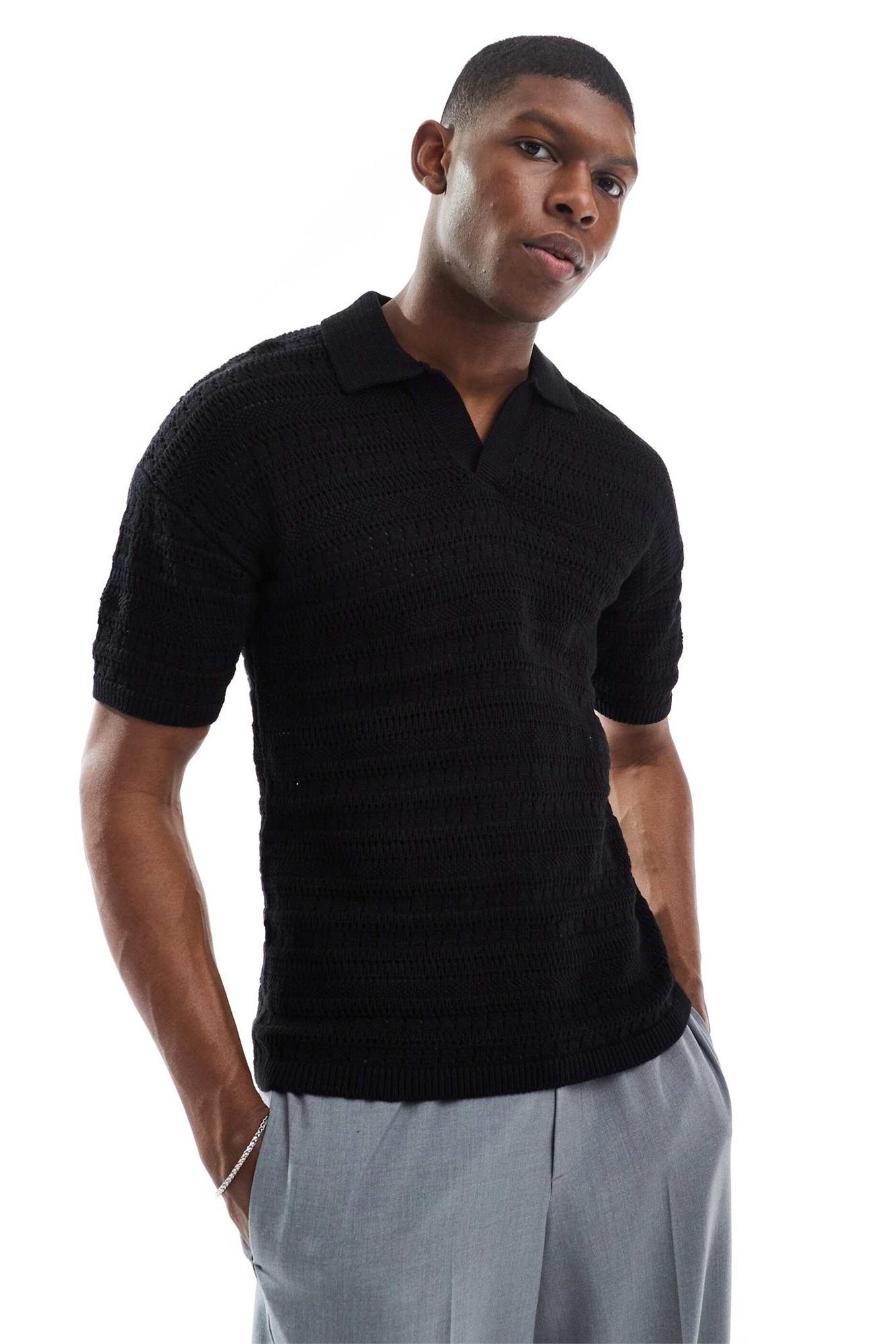 Поло с открытым вырезом и распашными плечами из ажурной вязки