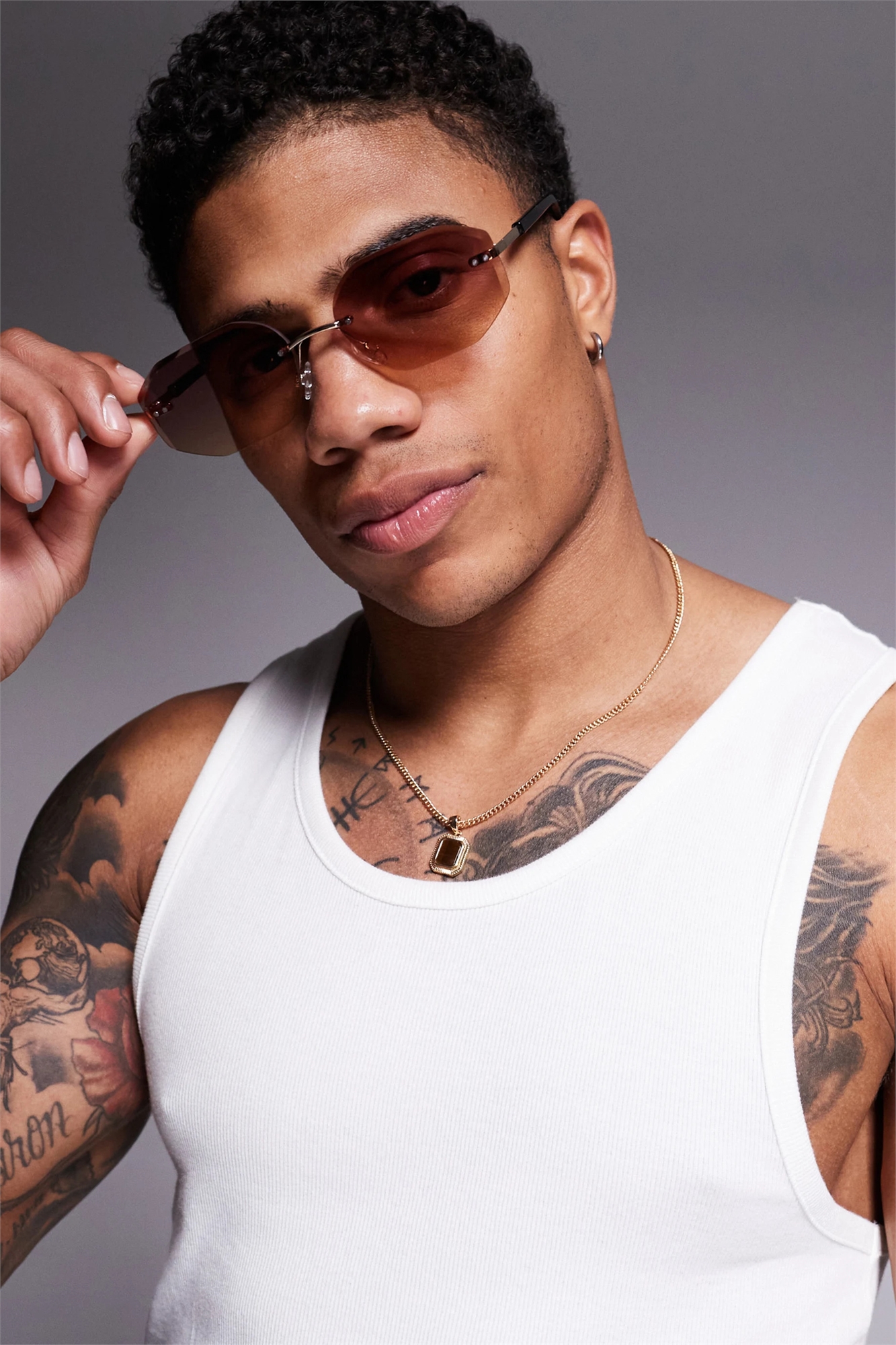 Солнцезащитные очки без оправы с фиолетовыми стеклами и металлической золотистой оправой