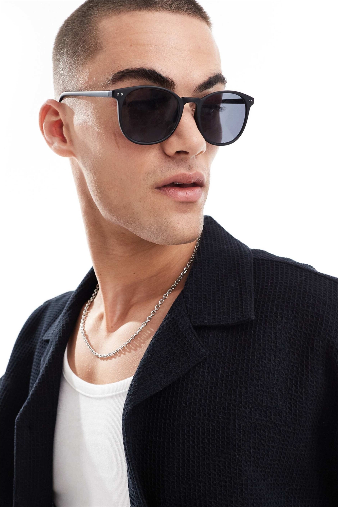 Квадратные солнцезащитные очки с дымчатыми стеклами и матовой черной оправой