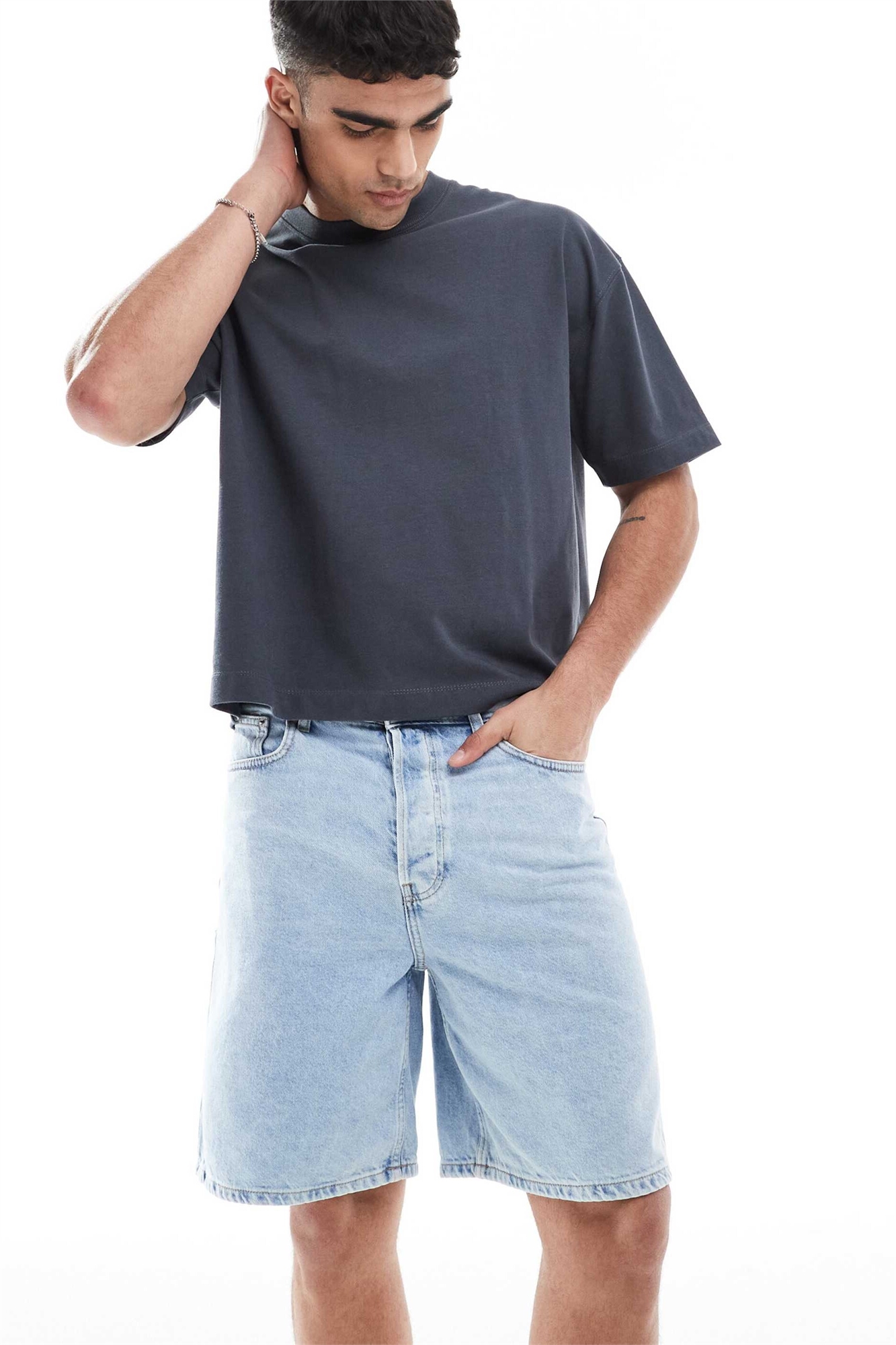 Джинсовая ткань без эластана: светло-голубой оттенок. Основной состав: 100% хлопок.