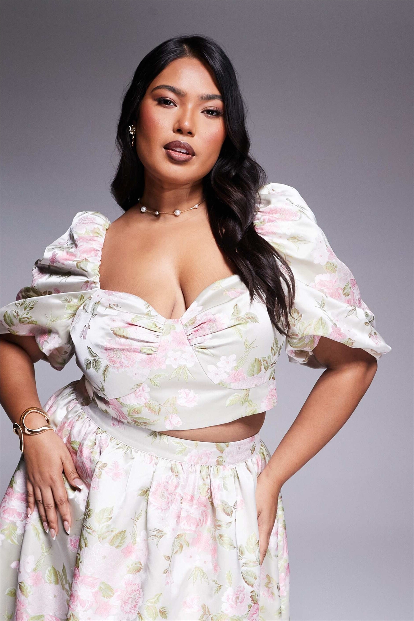 Топ с жакардовым узором и буфчатыми рукавами co-ord