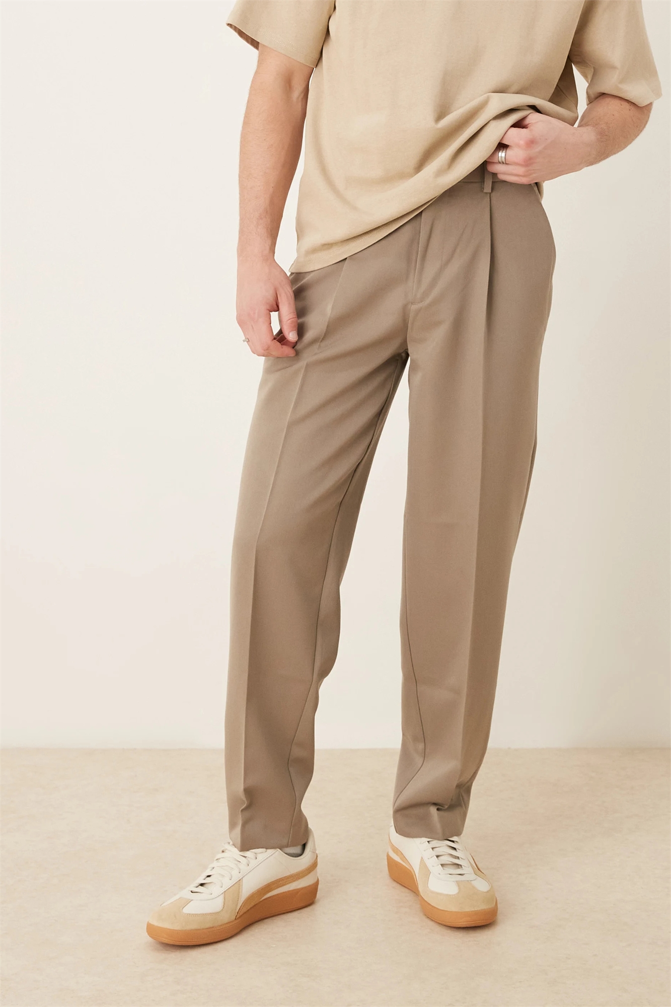 Стильные широкие брюки зауженного кроя со складкой спереди