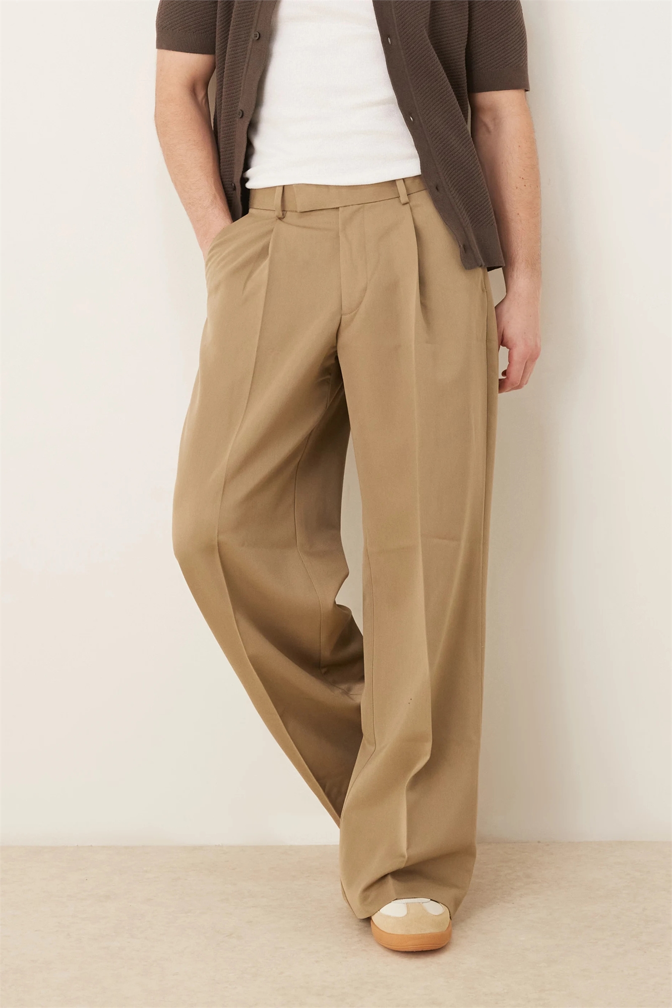 Стильные брюки свободного кроя со складкой спереди