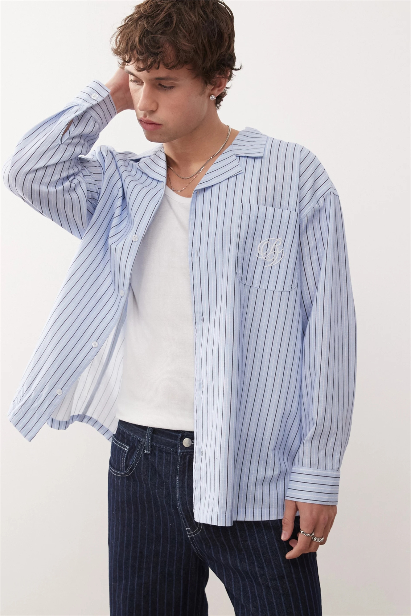 Рубашка с длинными рукавами в синюю тонкую полоску