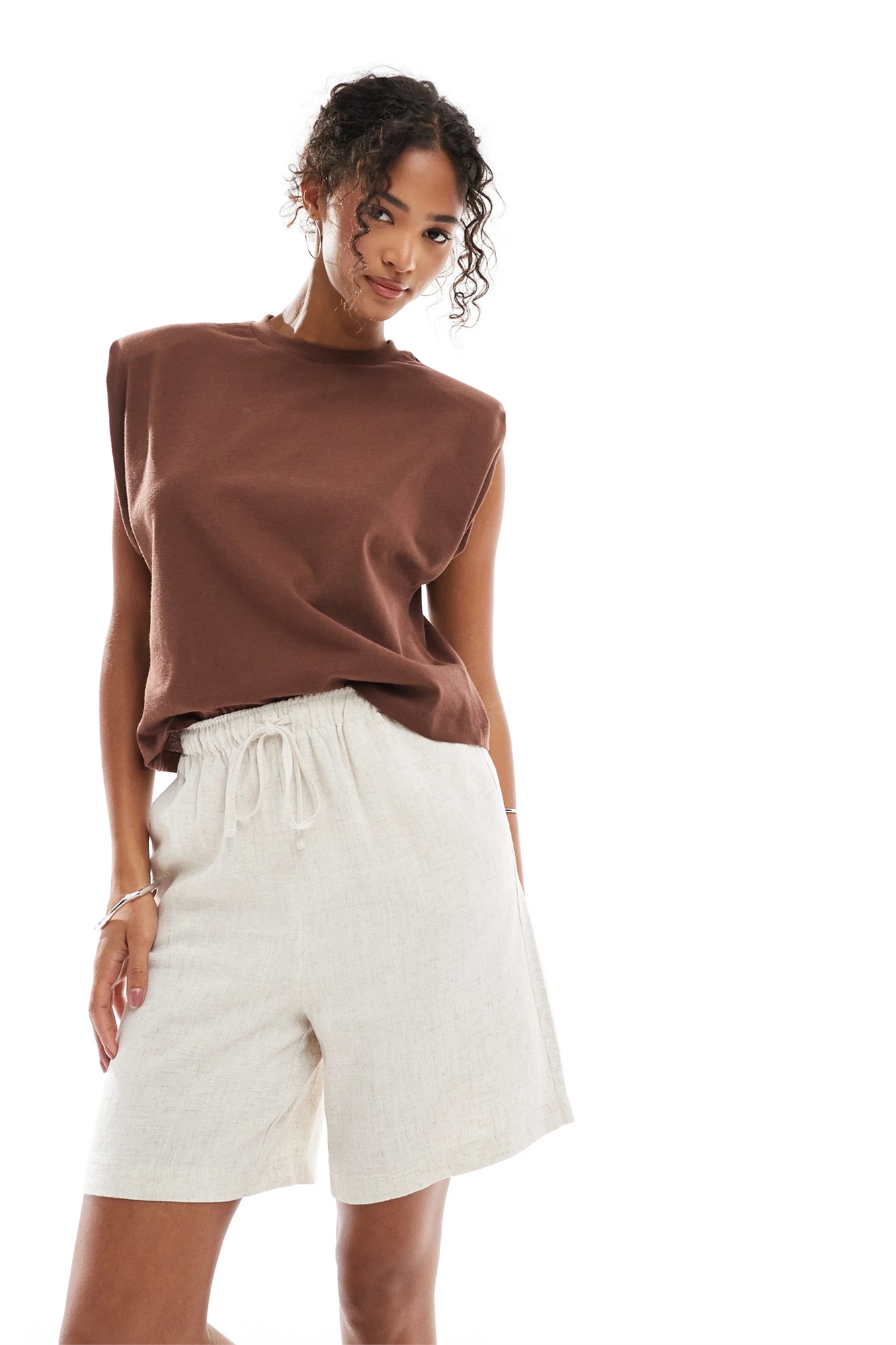 Изготовлено из льна, дышащей ткани с неровной текстурой Основной материал: 80% вискоза, 20% лен.