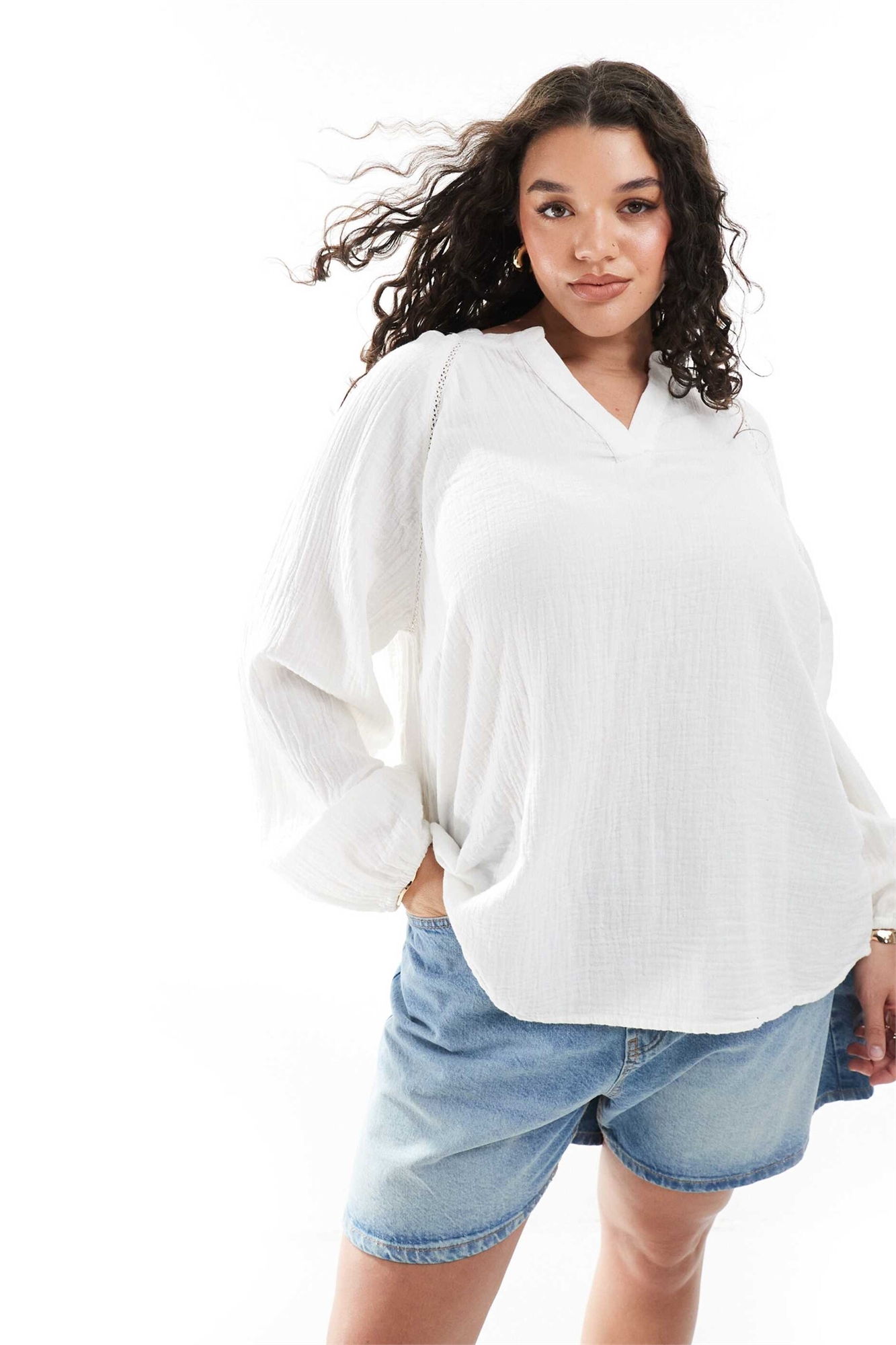 Блузка с V-образным вырезом из марли