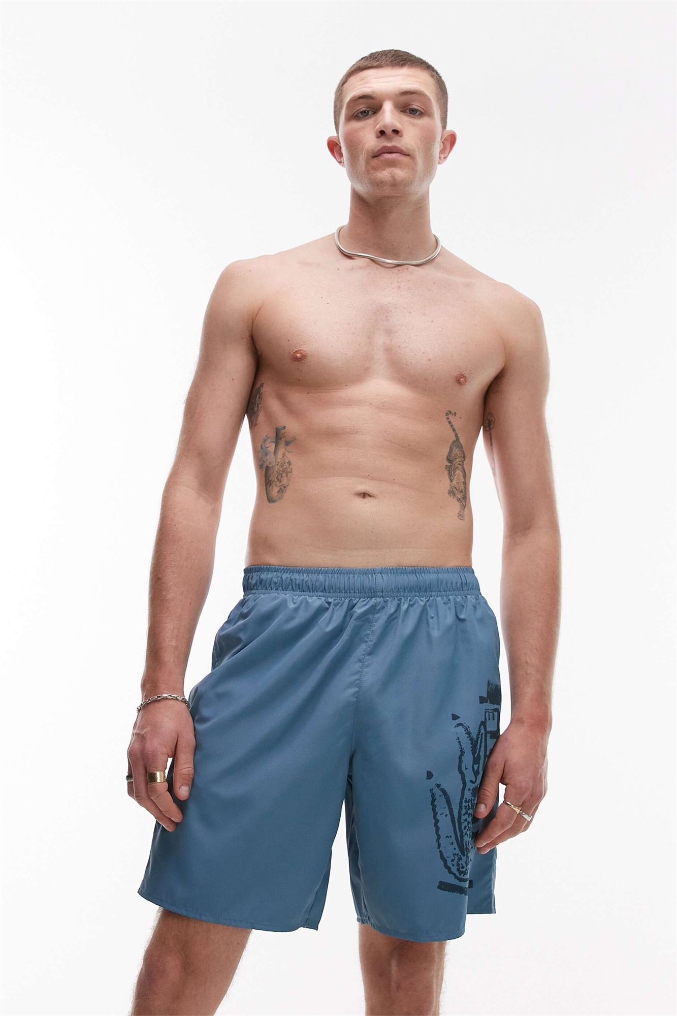 Плавательные шорты синего цвета с графическим принтом