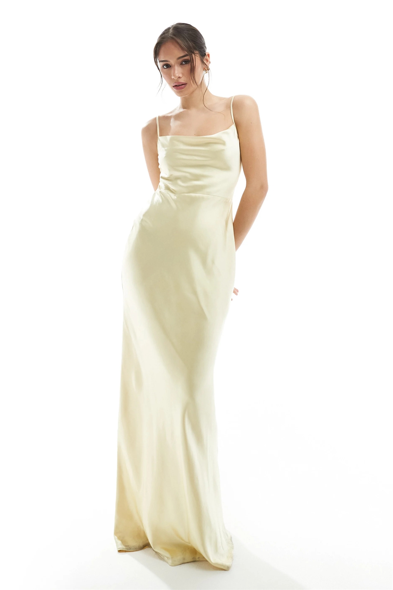 Атласное макси-платье с капюшоном для подружки невесты Keisha