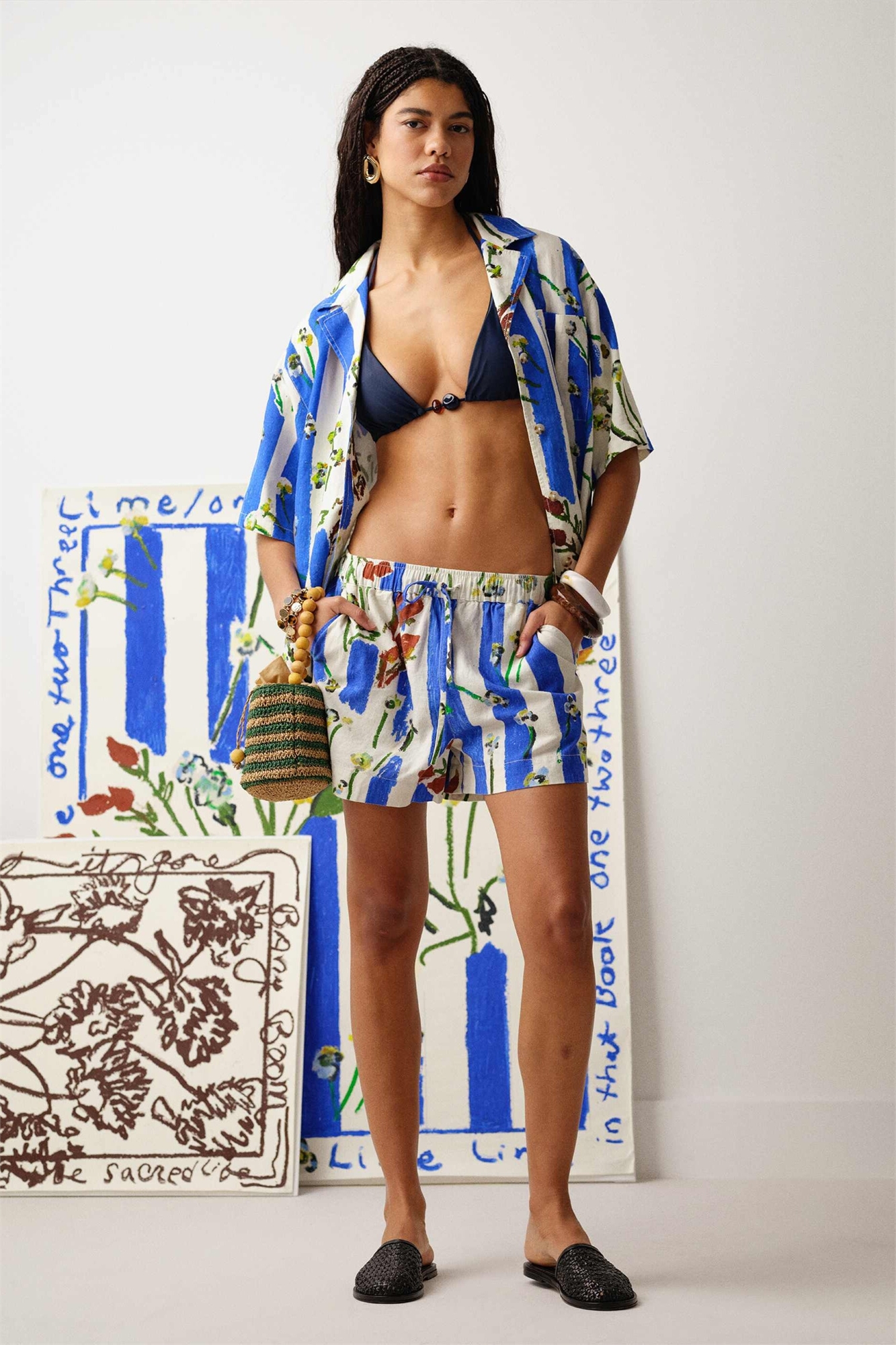Костюм-комплект Bradley.B: шорты из льна с высокой талией и цветочным узором