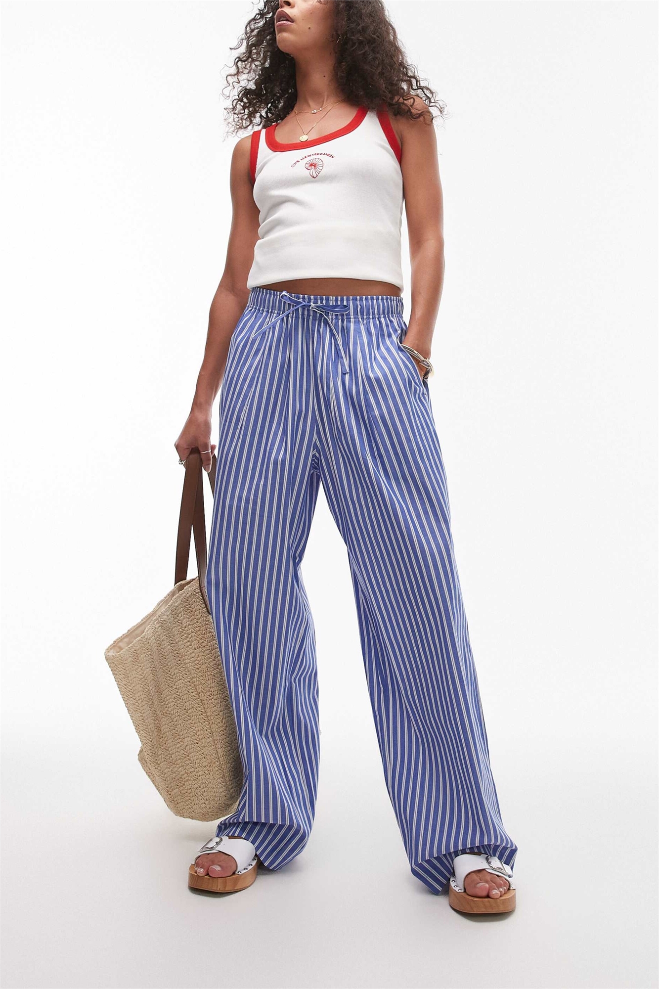 Брюки из поплина с широкими брючинами и эластичным поясом