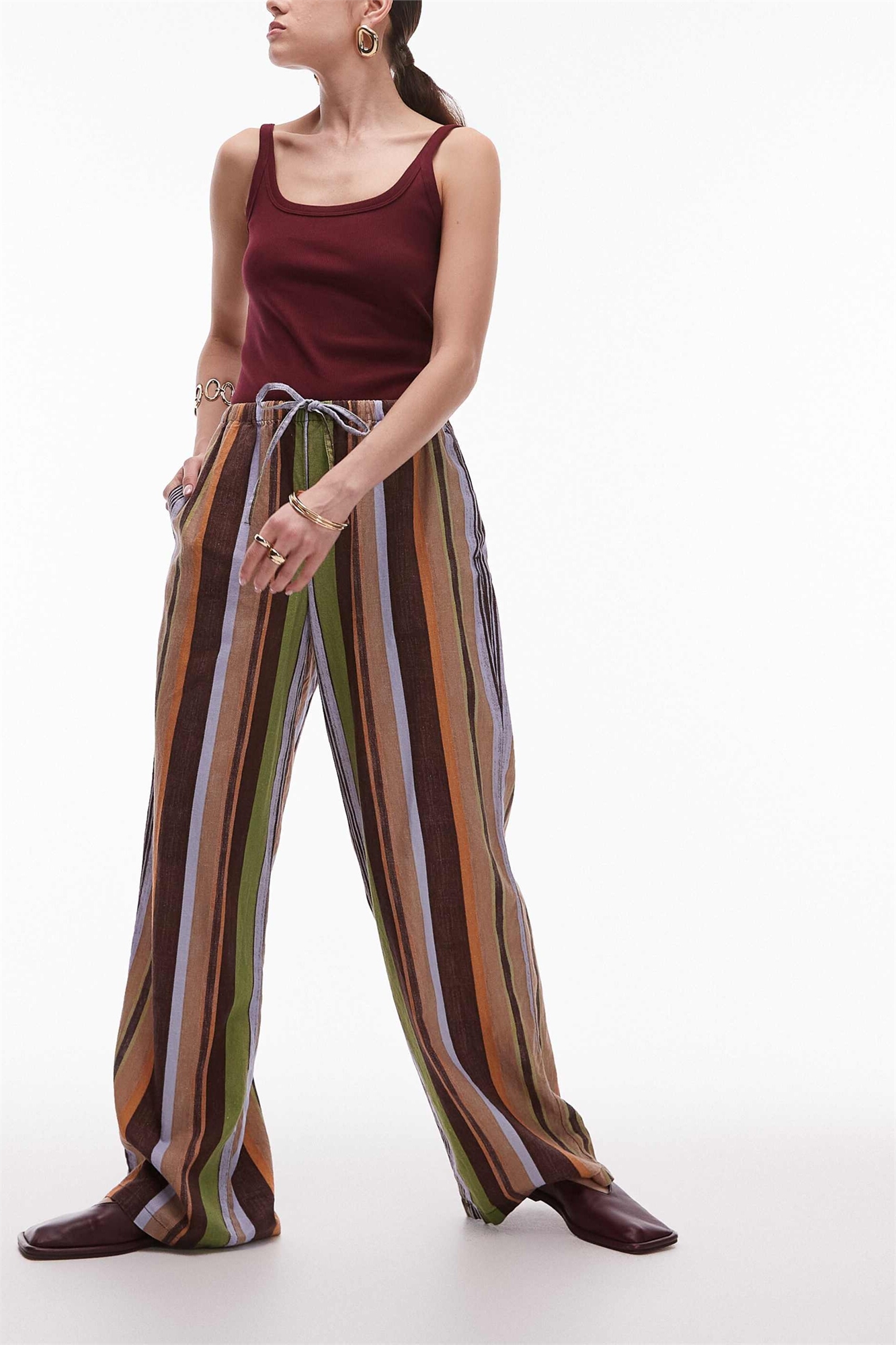 Лен: изготовлено из льна, дышащей ткани с неровной текстурой Основной материал: 55% лен, 45% вискоза.