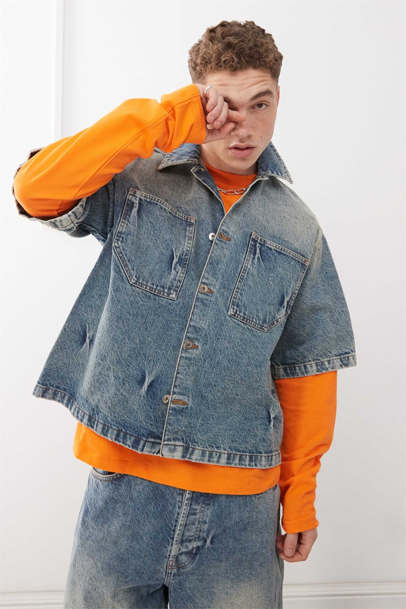 Неэластичный деним: синяя стирка Основной материал: 100% хлопок.