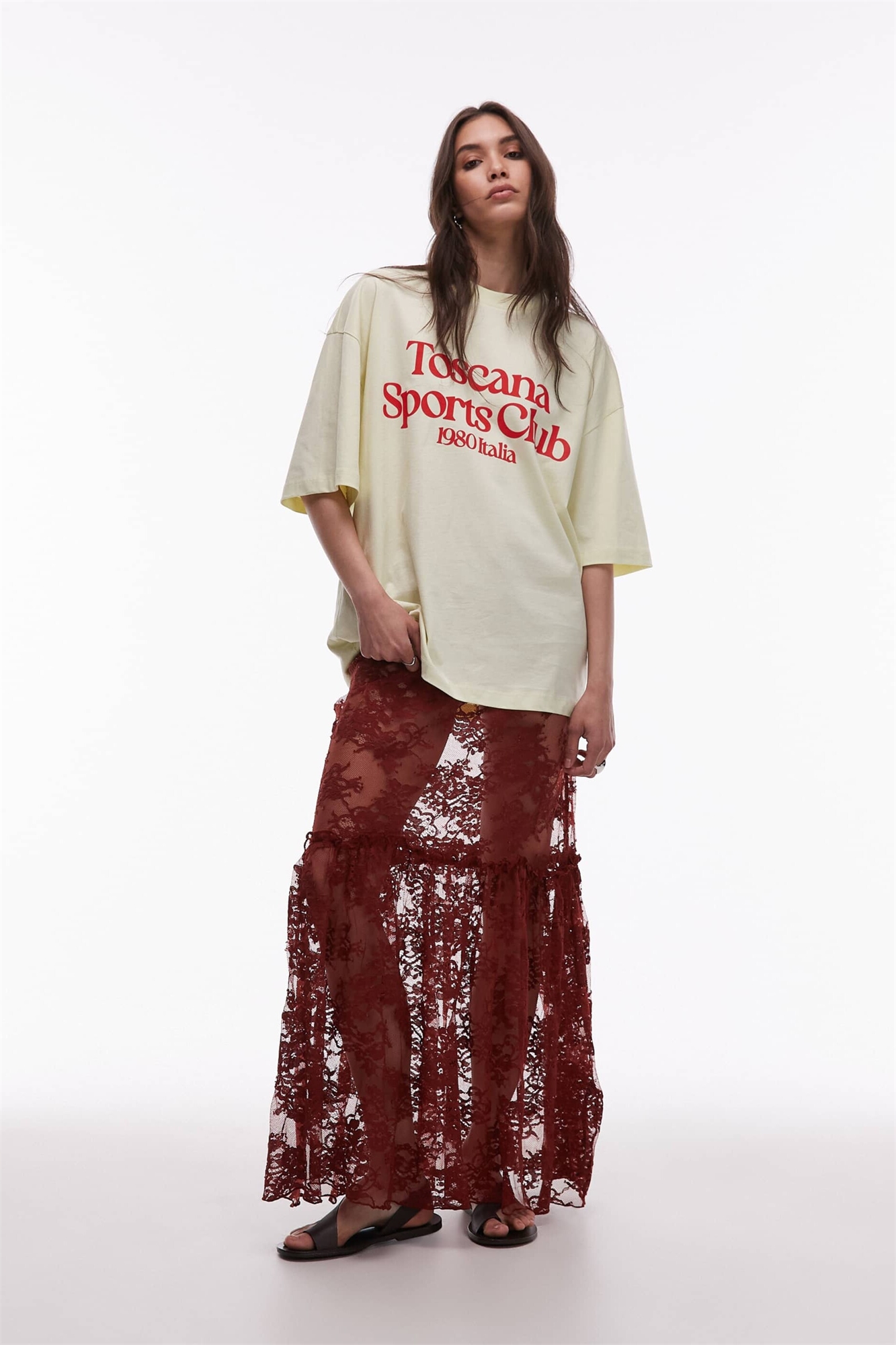 Макси-юбка из прозрачного кружева с рюшами по шву