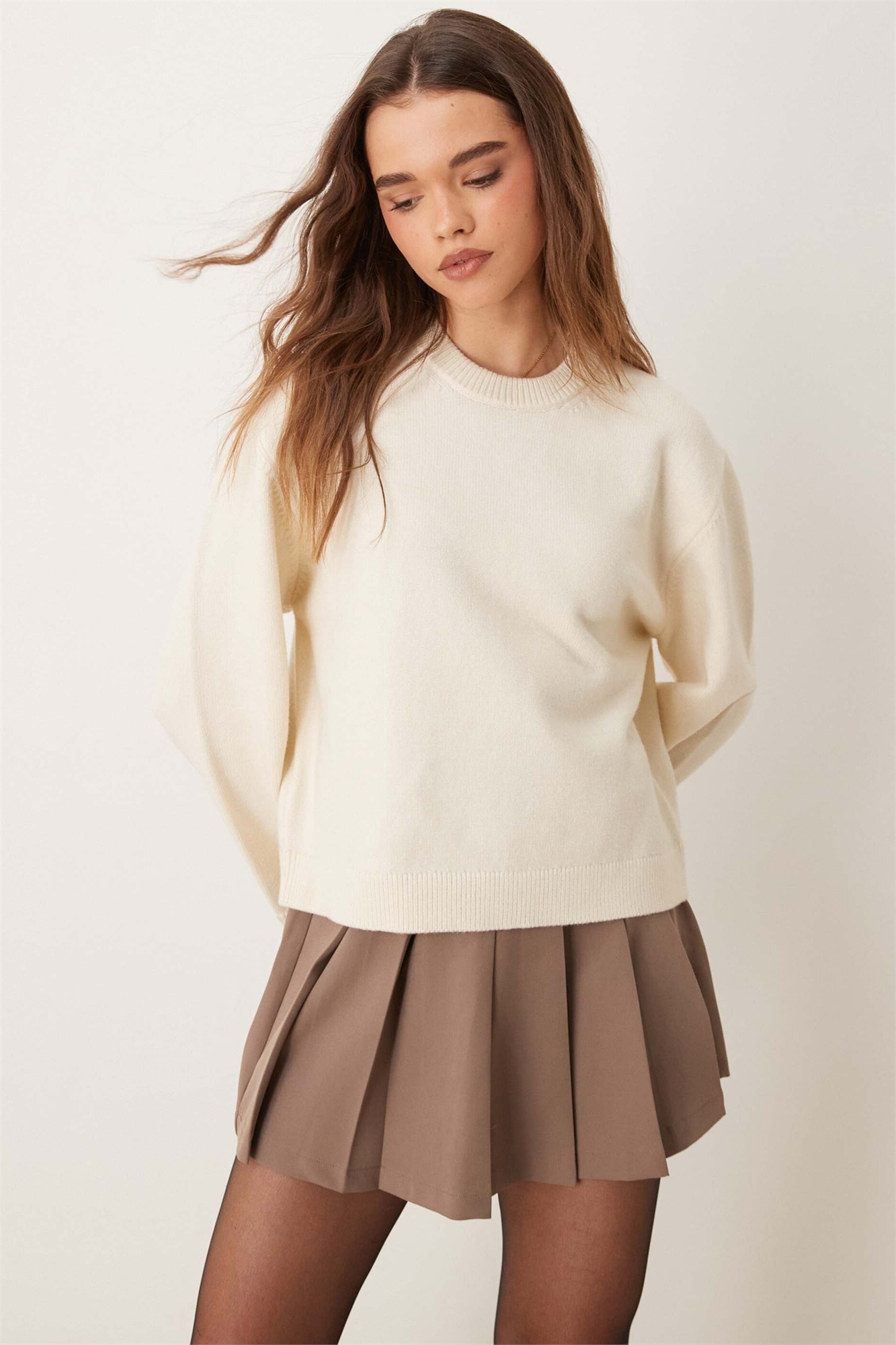 Трикотажный свитер с круглым вырезом и широкими рукавами