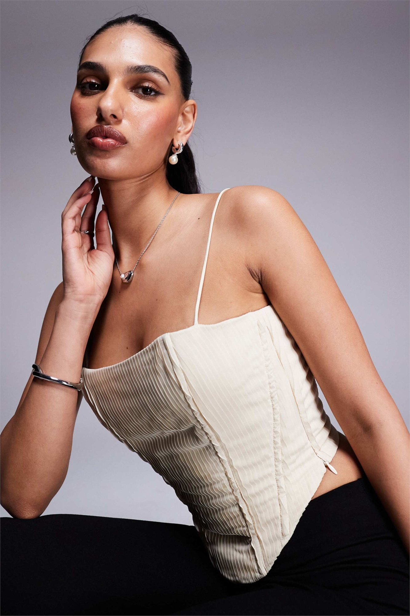 Корсет с завязками на спине и плиссированной отделкой кремового цвета