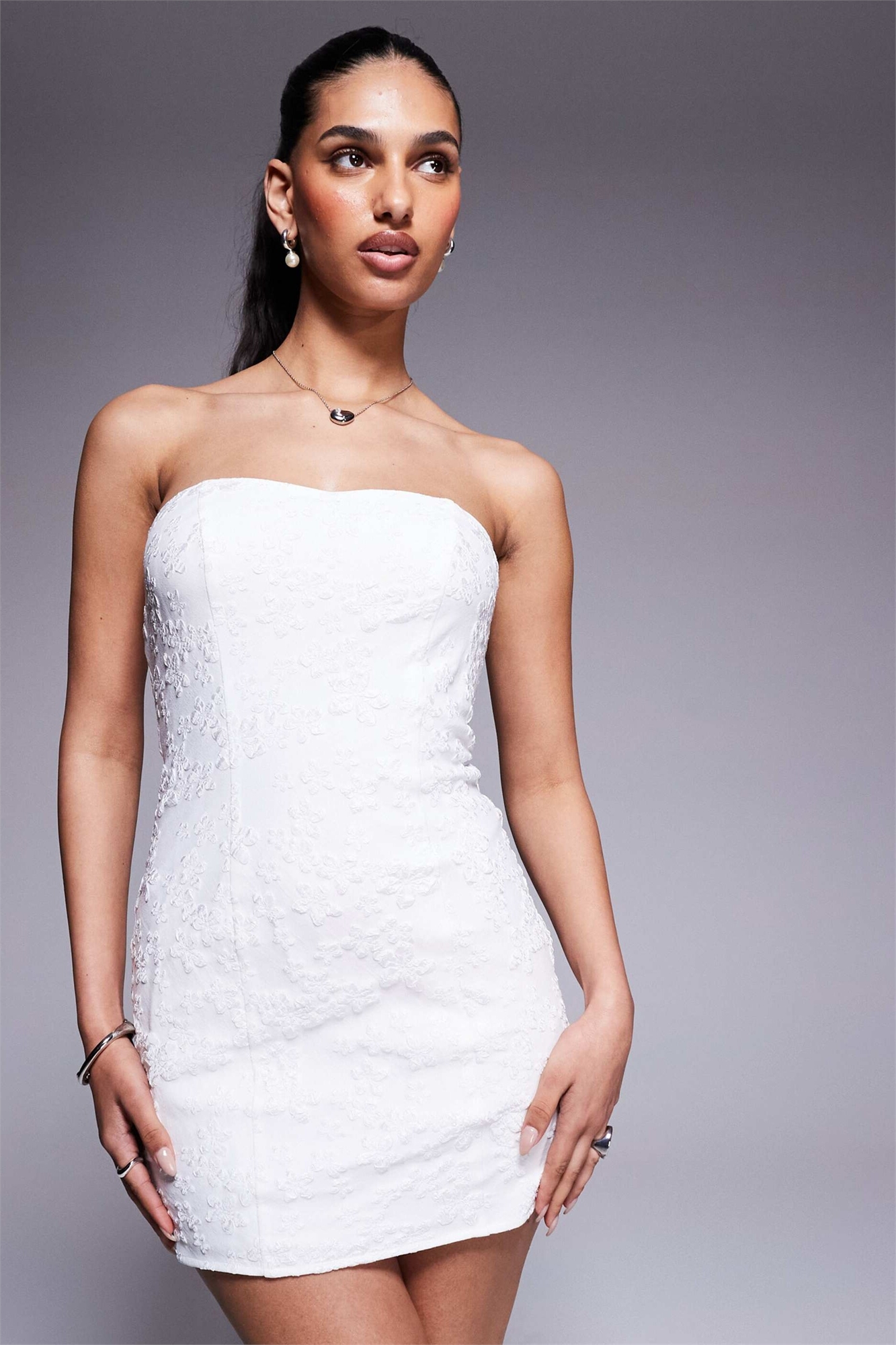 Структурированное мини-платье-бандо с вышивкой