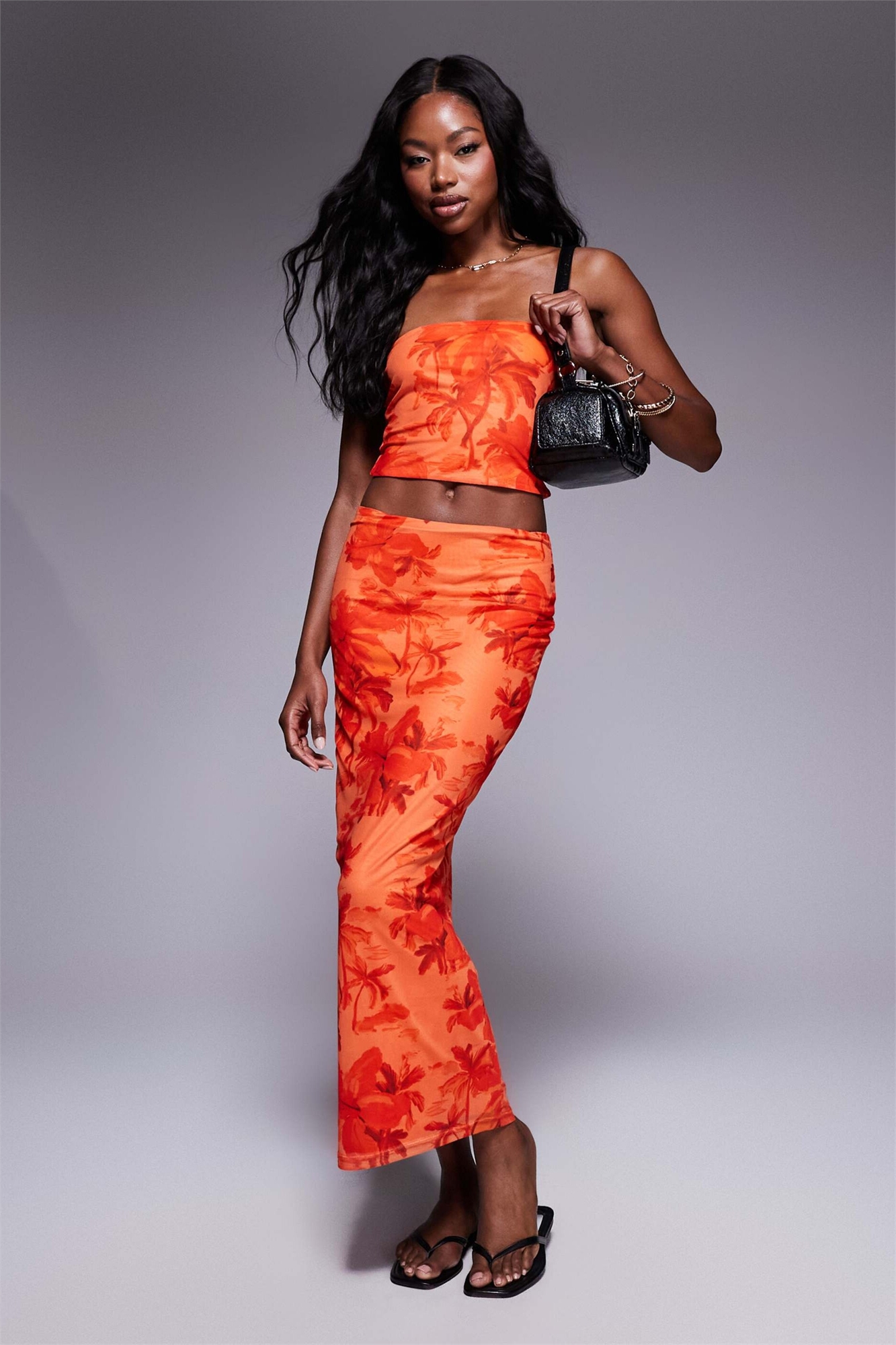 Комплект из сетчатого топа-бандо и юбки-миди с заниженной талией