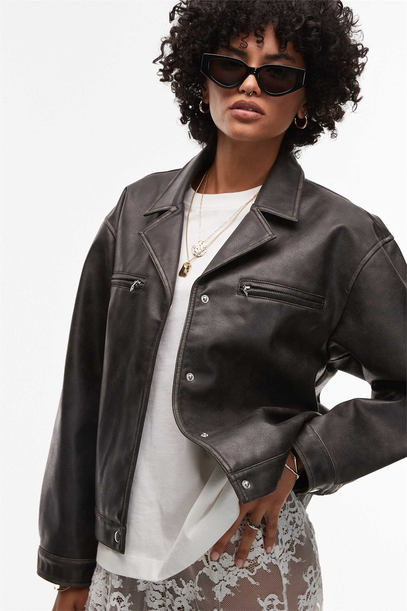 Короткая куртка из искусственной кожи на пуговицах