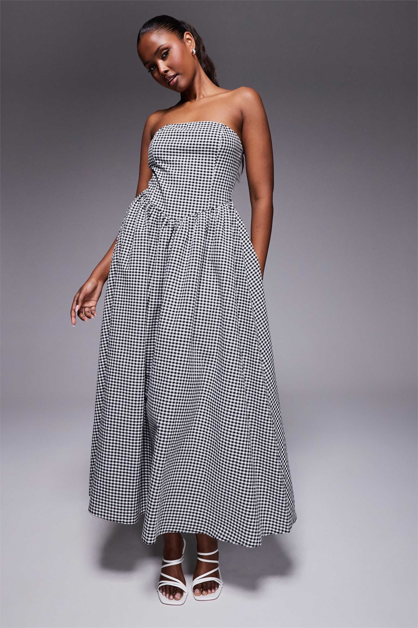 Эксклюзивное макси-платье с V-образным вырезом и бандо, с преобладанием хлопка