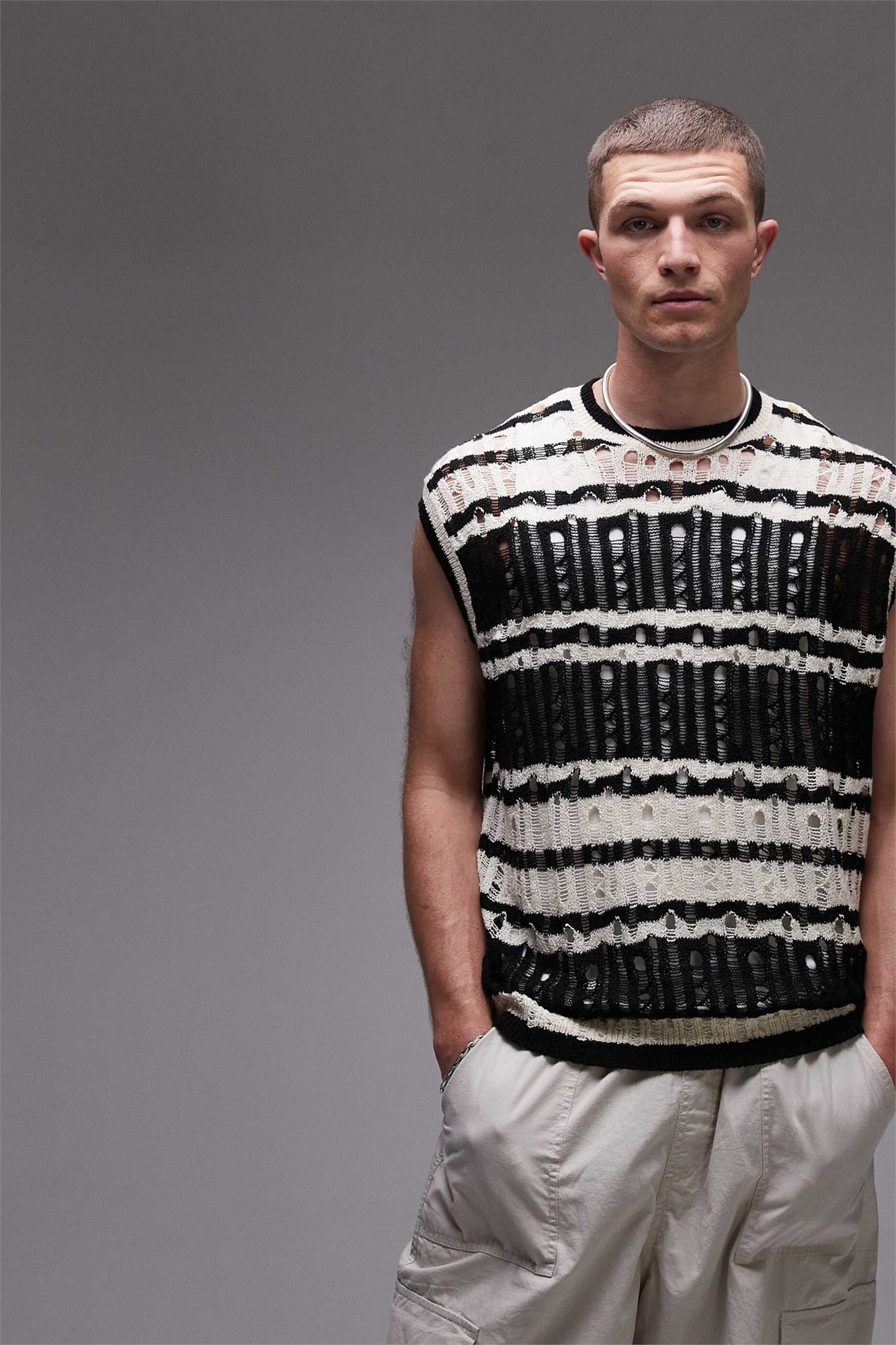 Трикотажная майка свободного кроя с эффектом потертости