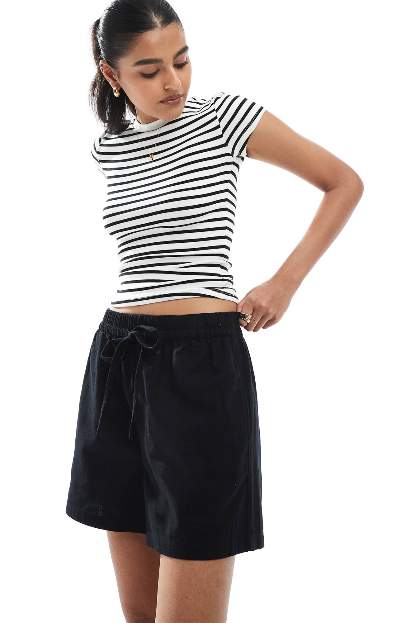 Шорты с эффектом льна, надеваемые через голову
