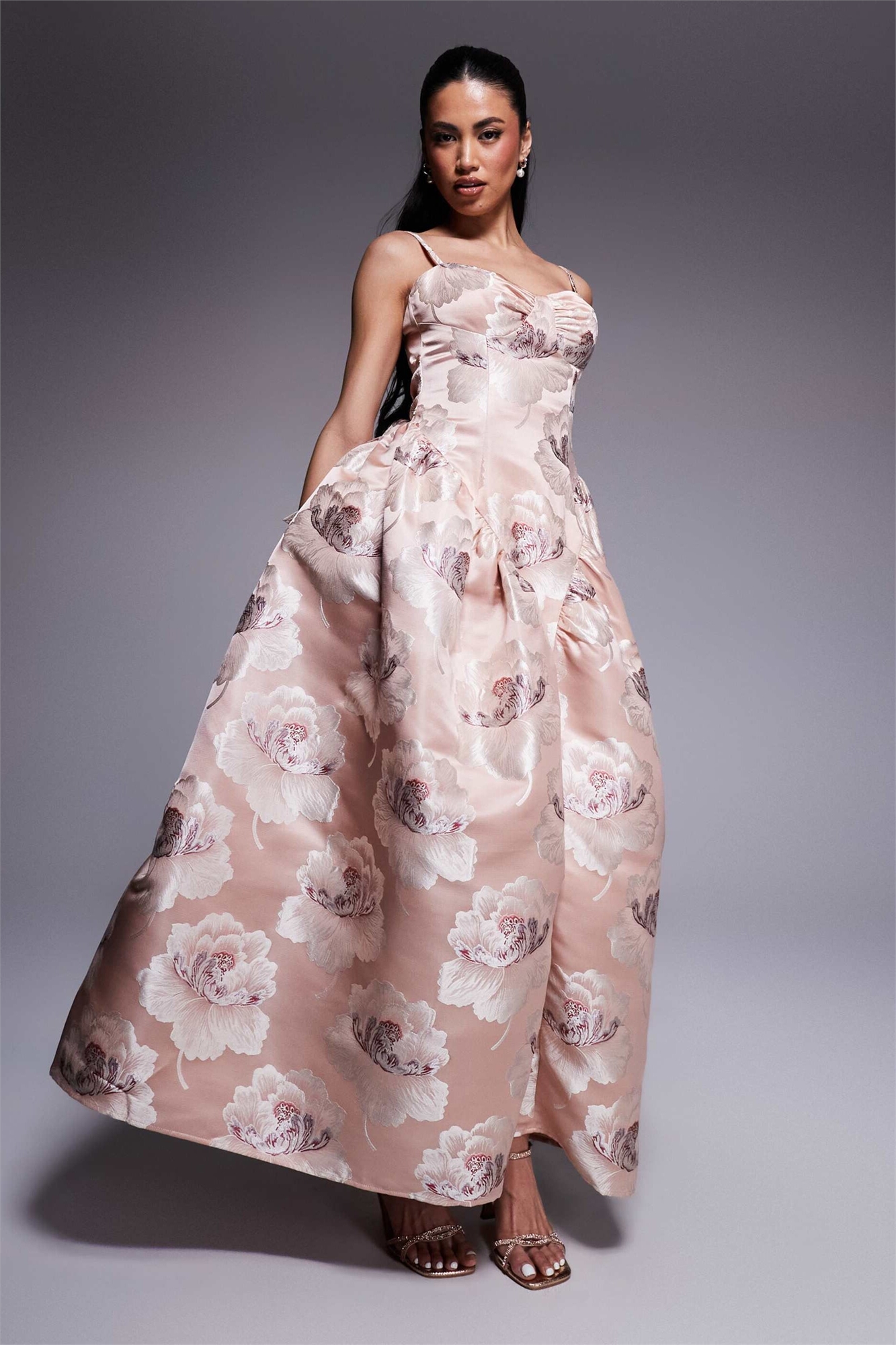 Макси-платье с жаккардовым узором и заниженной талией