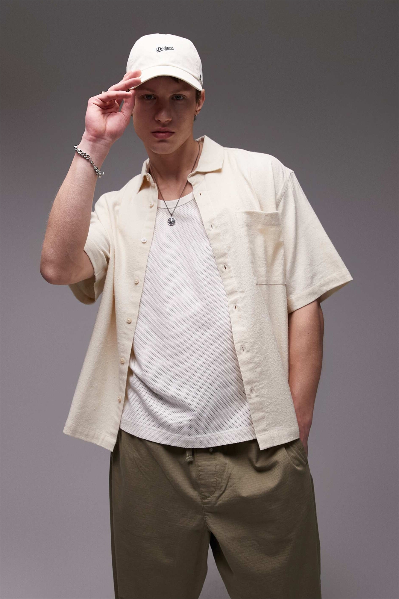 Рубашка с короткими рукавами, свободного кроя и фактурной текстурой