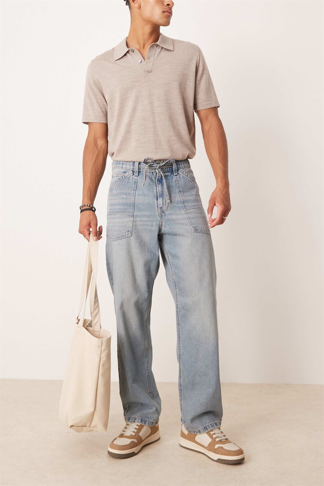 Джинсовая ткань средней плотности: светло-голубой оттенок. Без эластана для винтажного эффекта. Основной материал: 100% хлопок.