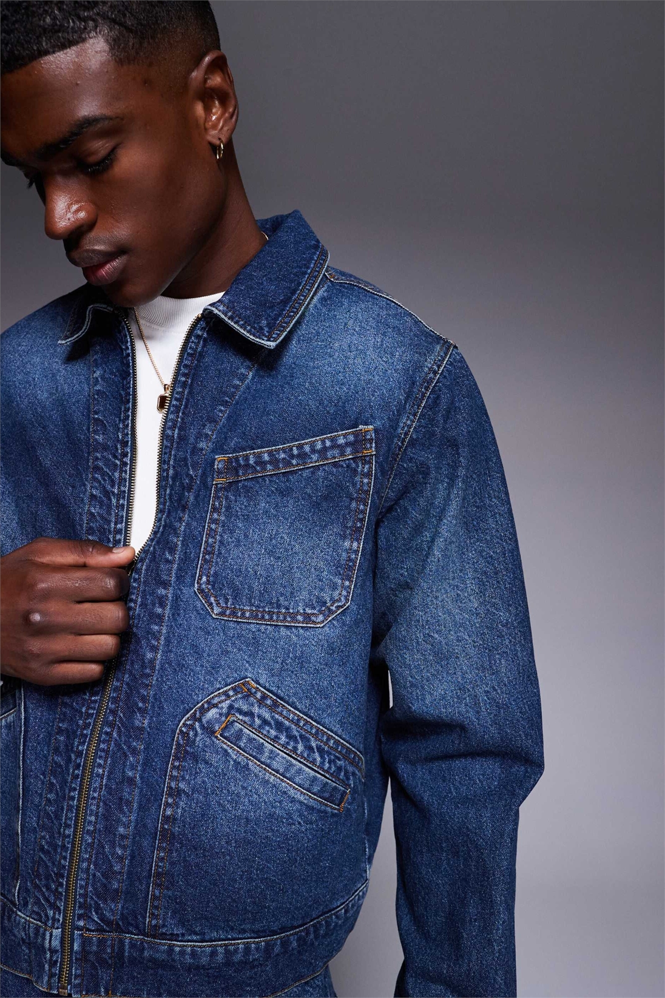 Джинсовая куртка Co-ord boxy harrington средней промывки синего цвета