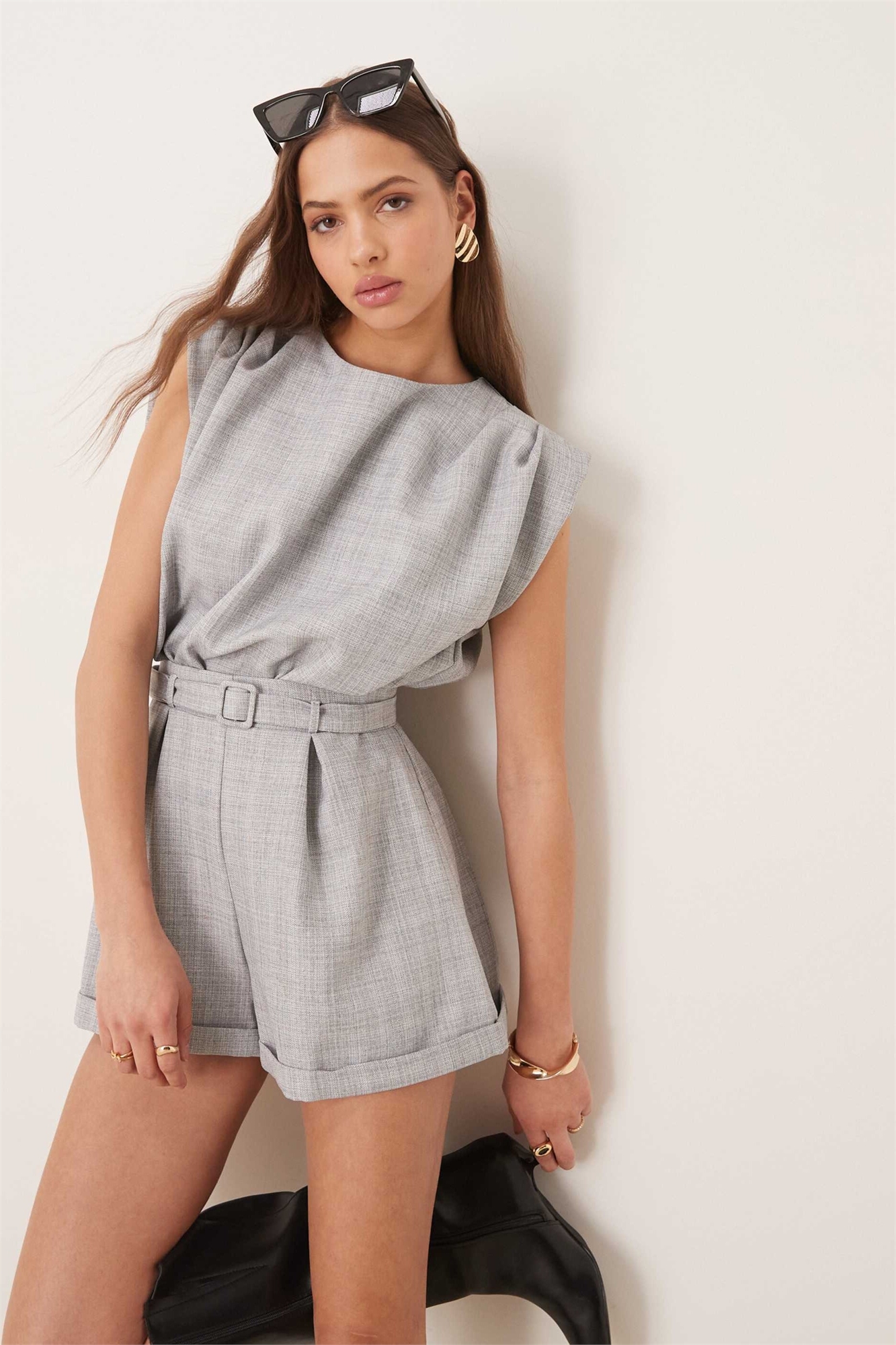 Короткий комбинезон из бумажного мешка с поясом