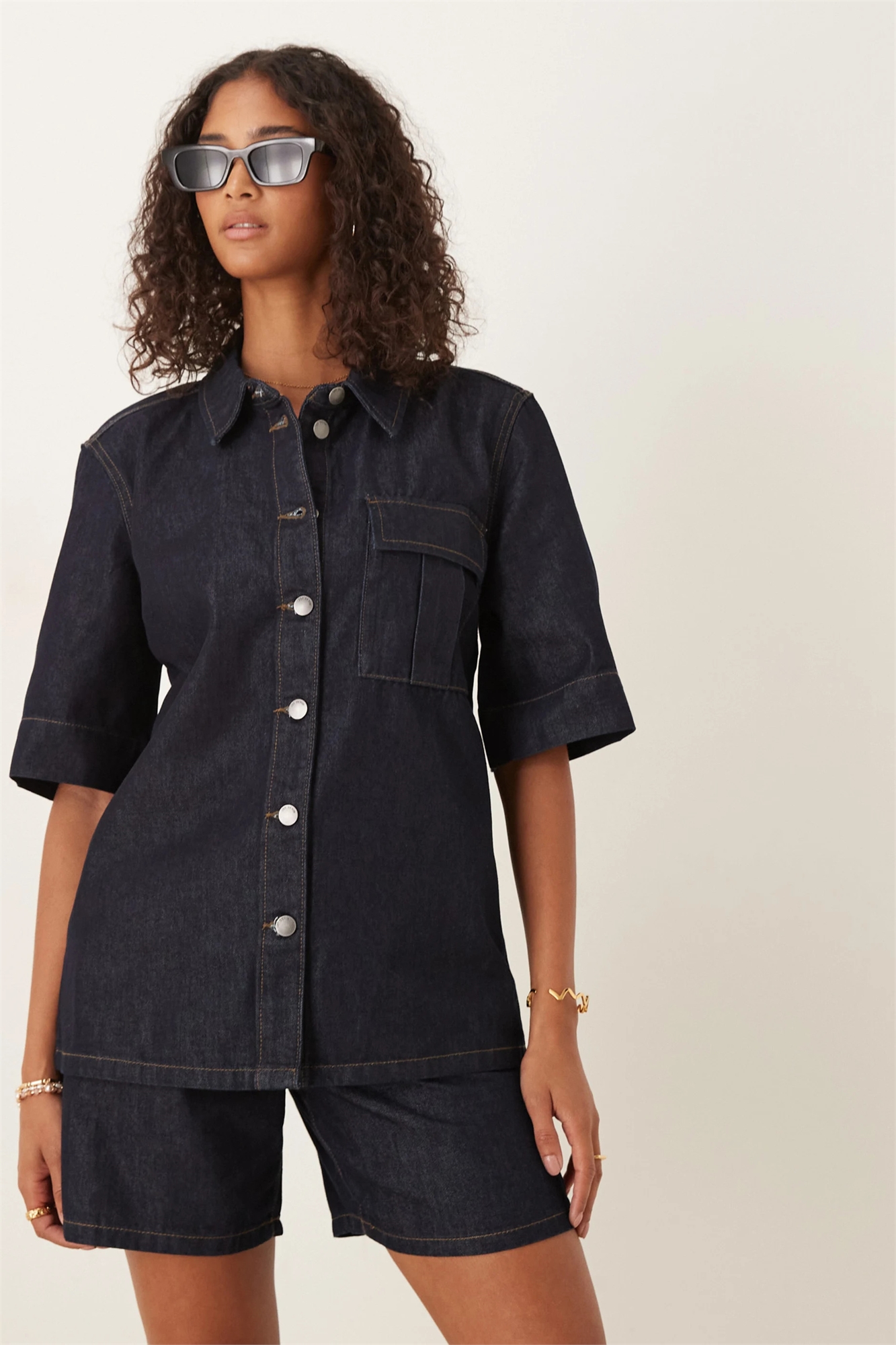 Джинсовая ткань без эластана: темно-синяя оттенок Основной состав: 64% хлопок, 32% полиэстер, 4% вискоза.
