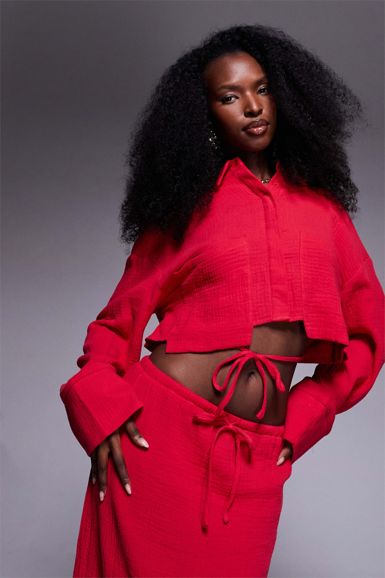 Эксклюзивная укороченная рубашка свободного кроя из фактурного хлопка с завязками сзади co-ord