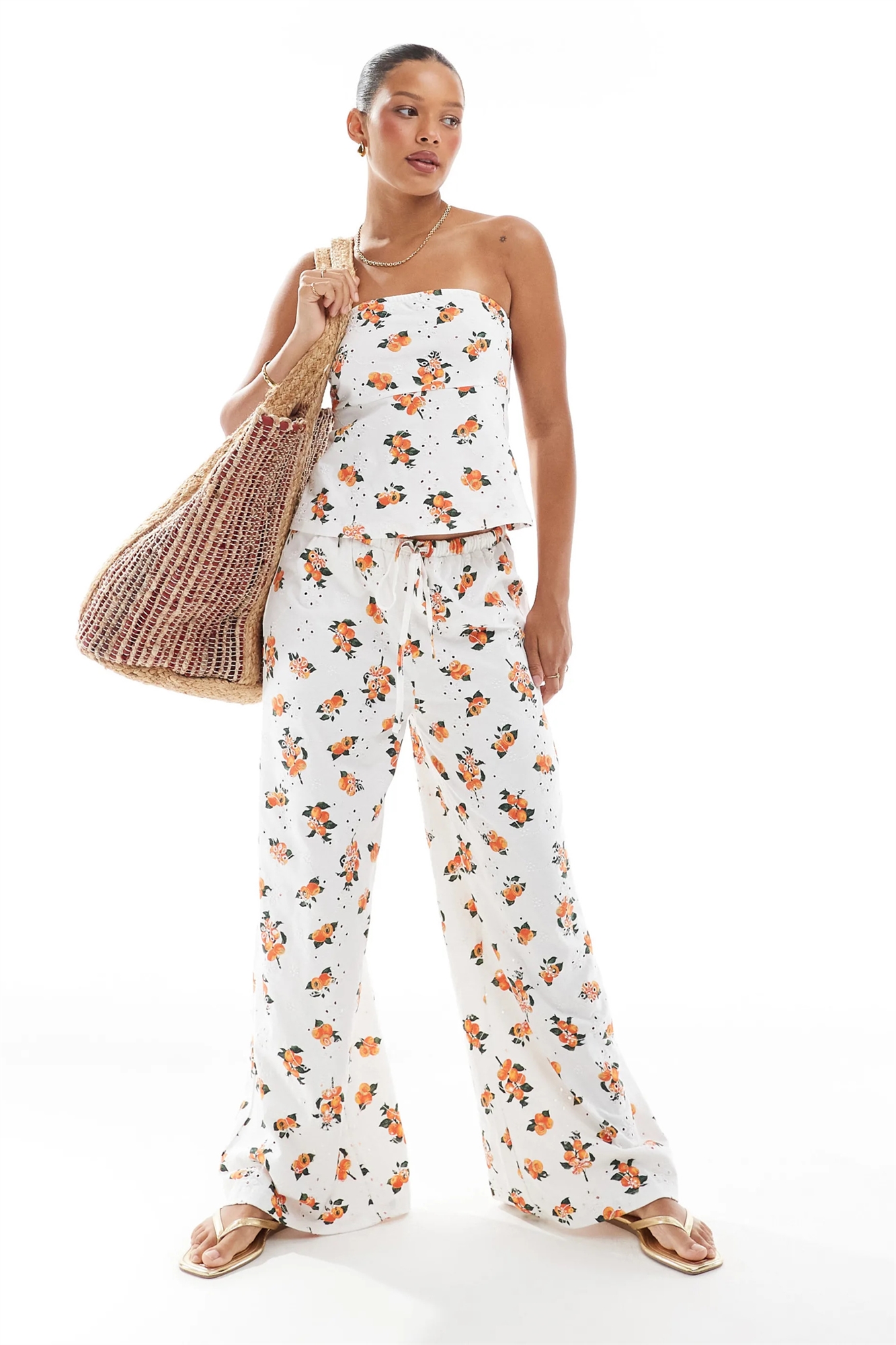 Брюки в стиле пижамы с вышиванием и завязками на талии co-ord