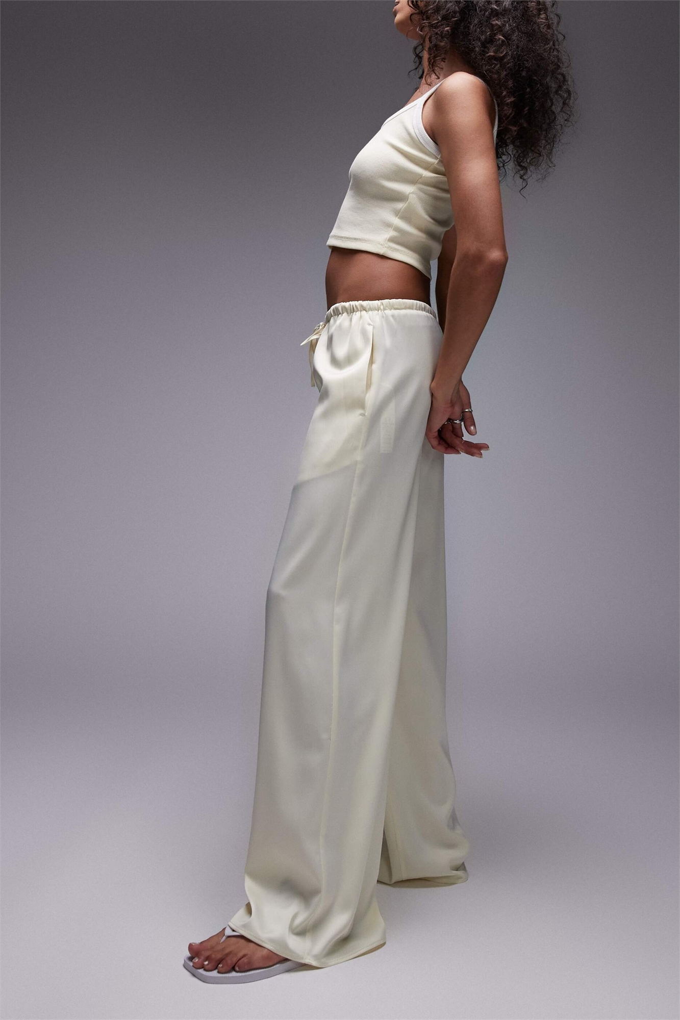 Брюки с широкими брючинами и атласным поясом
