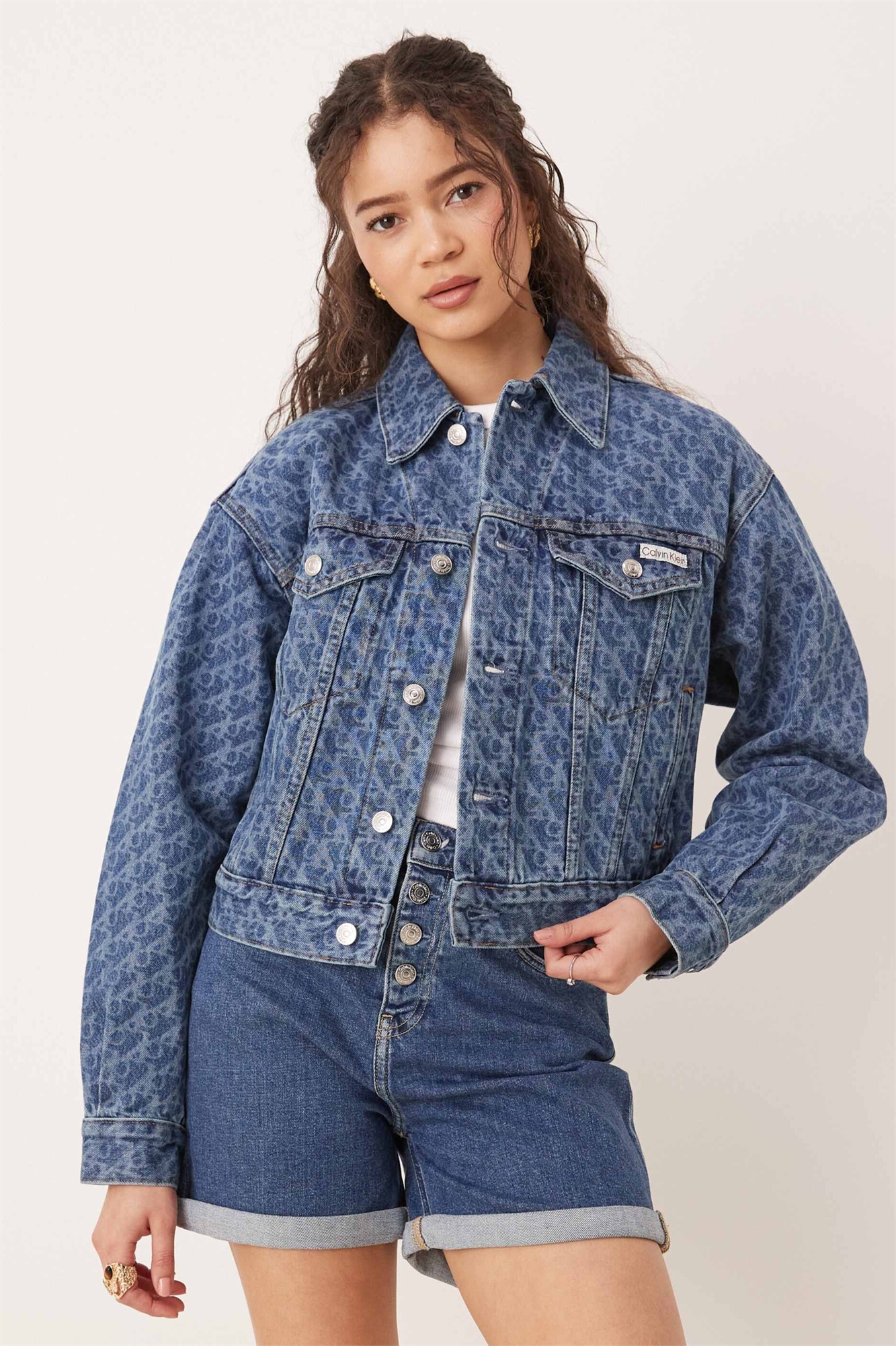 Джинсовая куртка с принтом Signature 90s по всей поверхности, средне-синего цвета