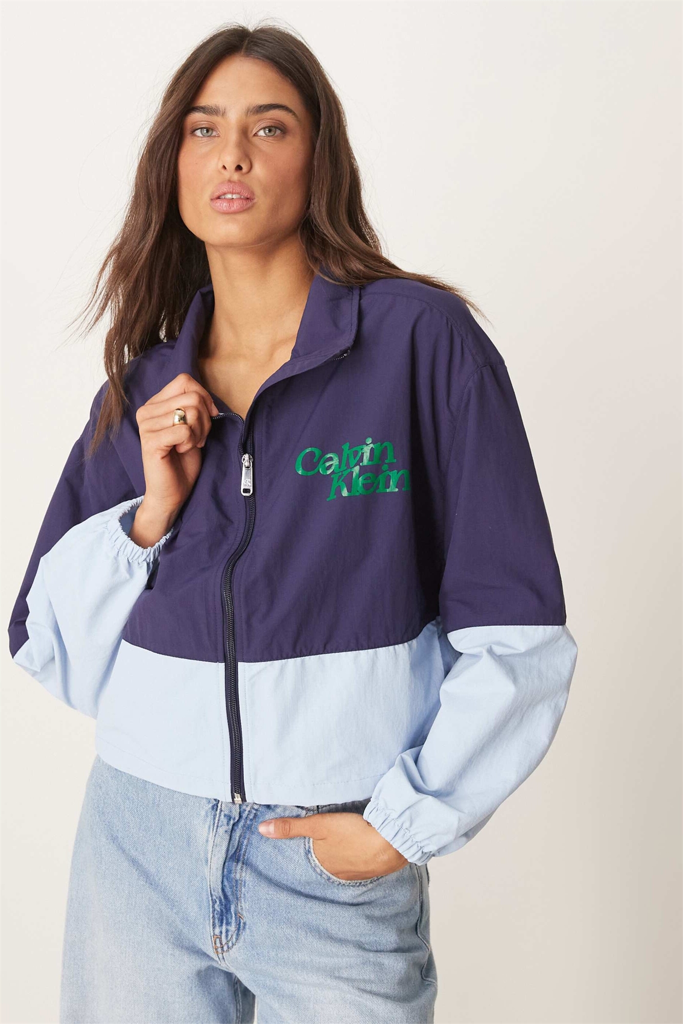 Укороченная ветровка с цветовыми вставками