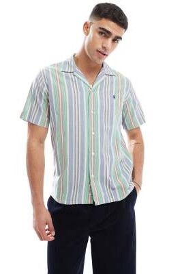 Рубашка с коротким рукавом, логотипом в виде значка и разноцветными полосками, классический крой свободного покроя