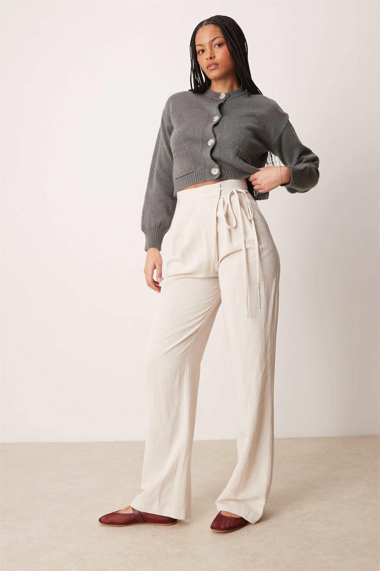 Длинные брюки с завязками, скроенные по фигуре