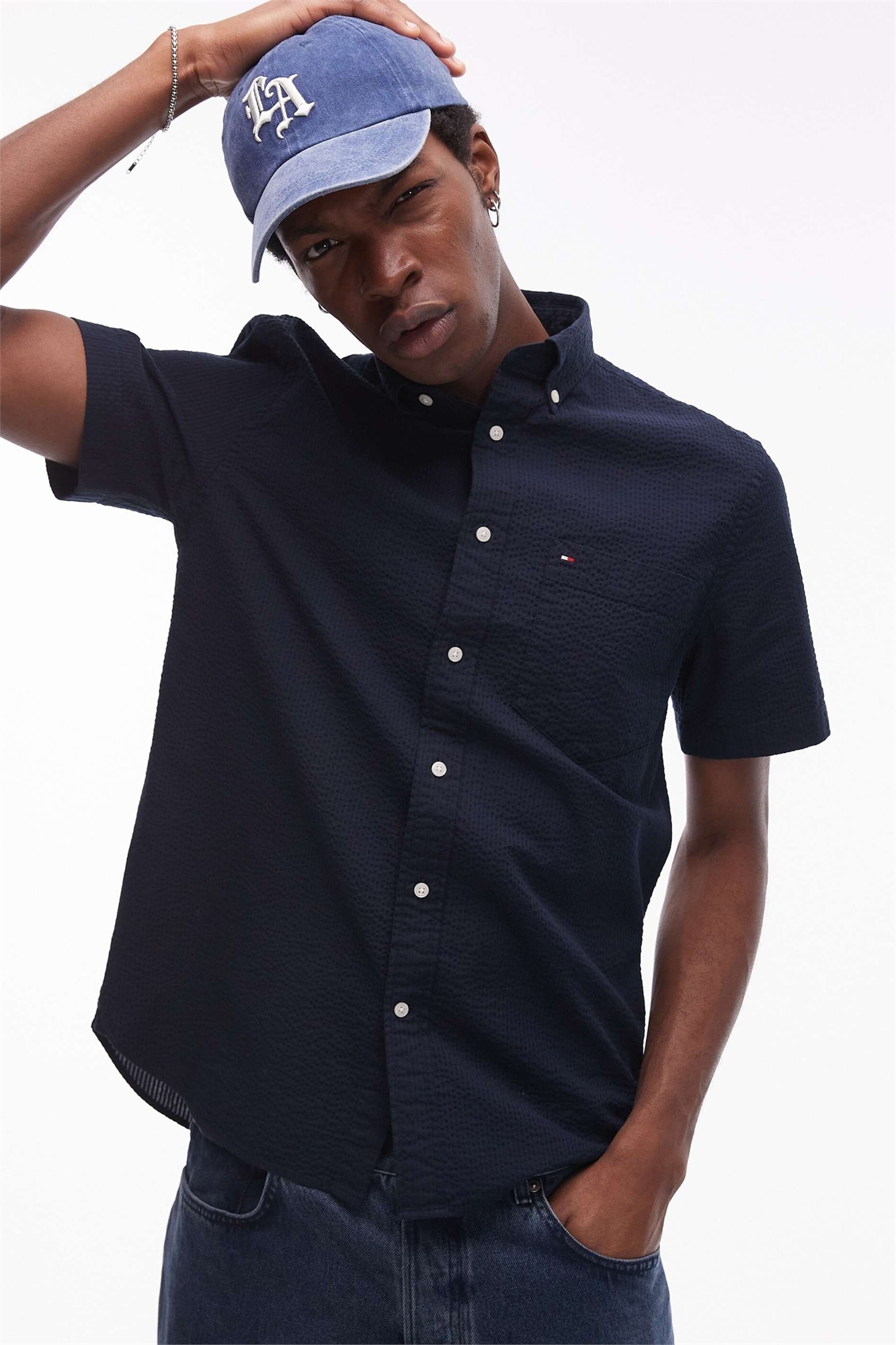 Рубашка с короткими рукавами из ткани «сирсакер»