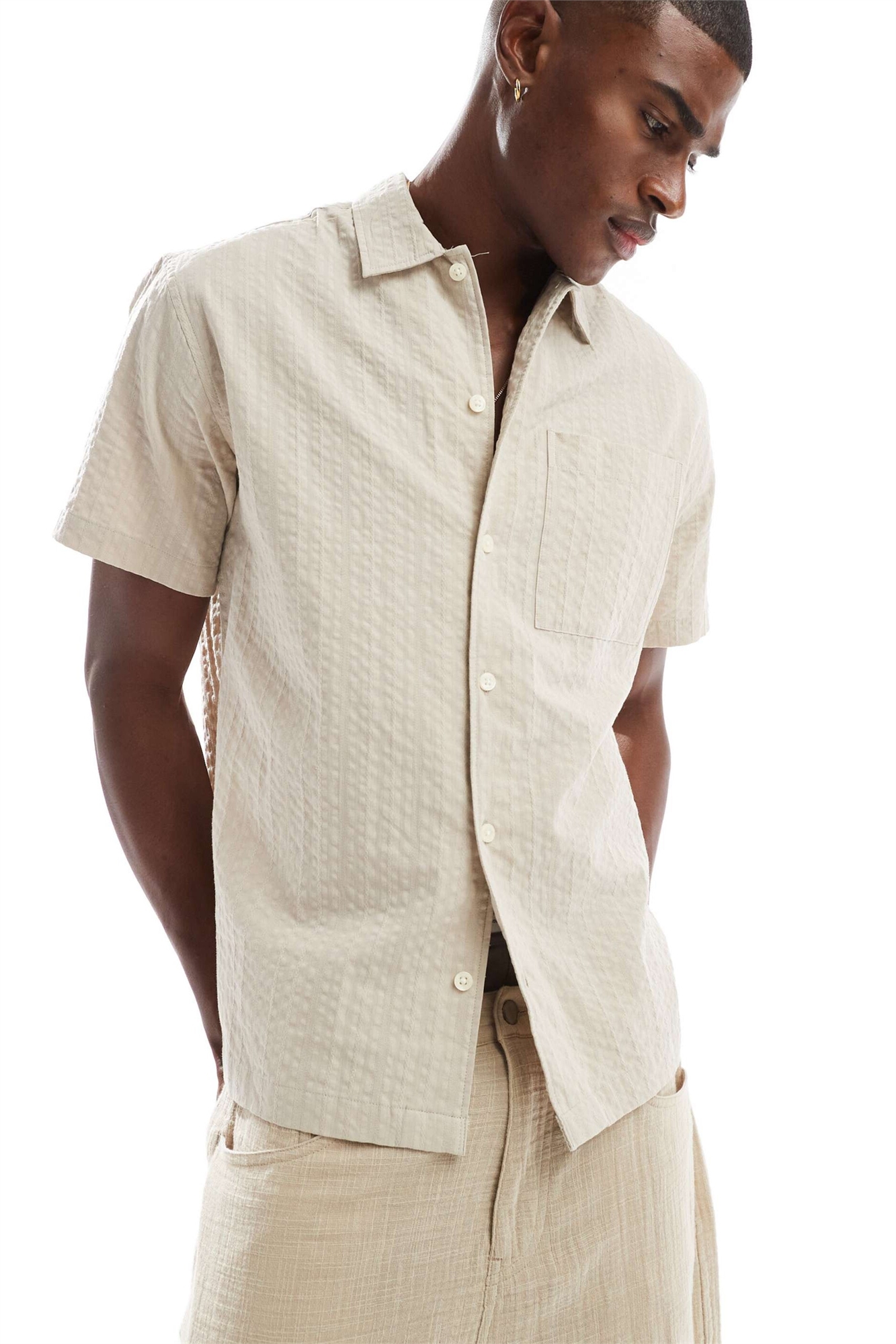 Сирсакер: легкая ткань с рельефной, морщинистой текстурой Основной материал: 100% хлопок.