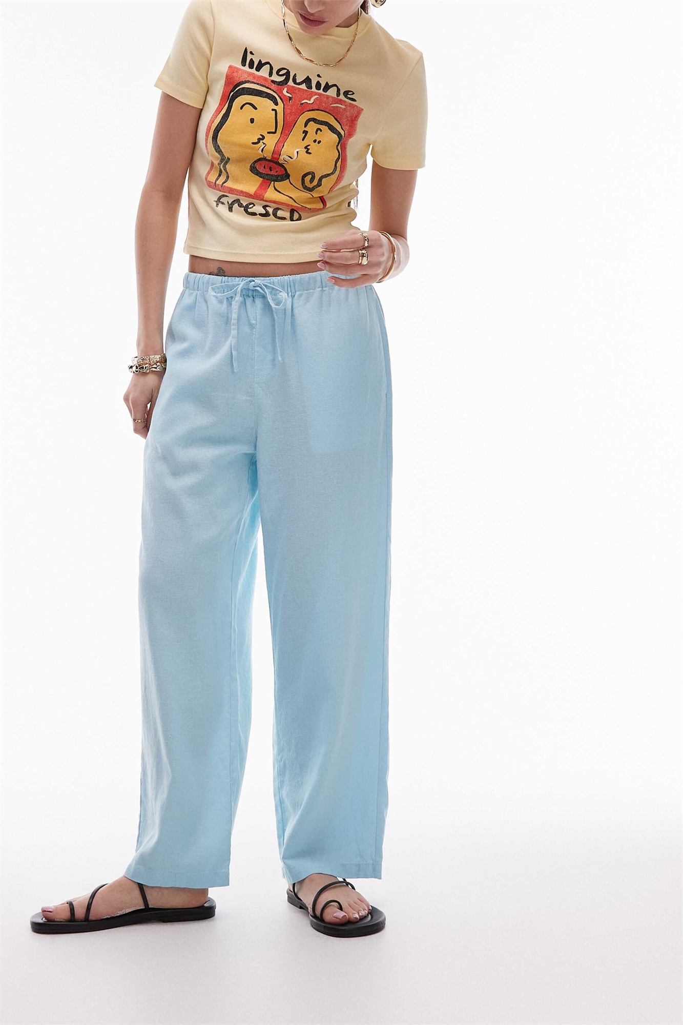 Лен: изготовлено из льна, дышащей ткани с неровной текстурой Основной материал: 55% лен, 45% вискоза.
