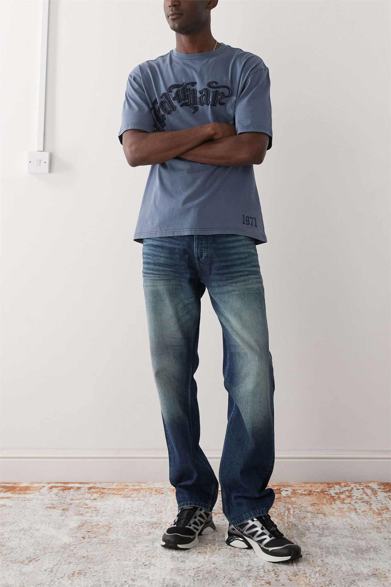 Неэластичный деним: средне-синий оттенок Основной материал: 100% хлопок.