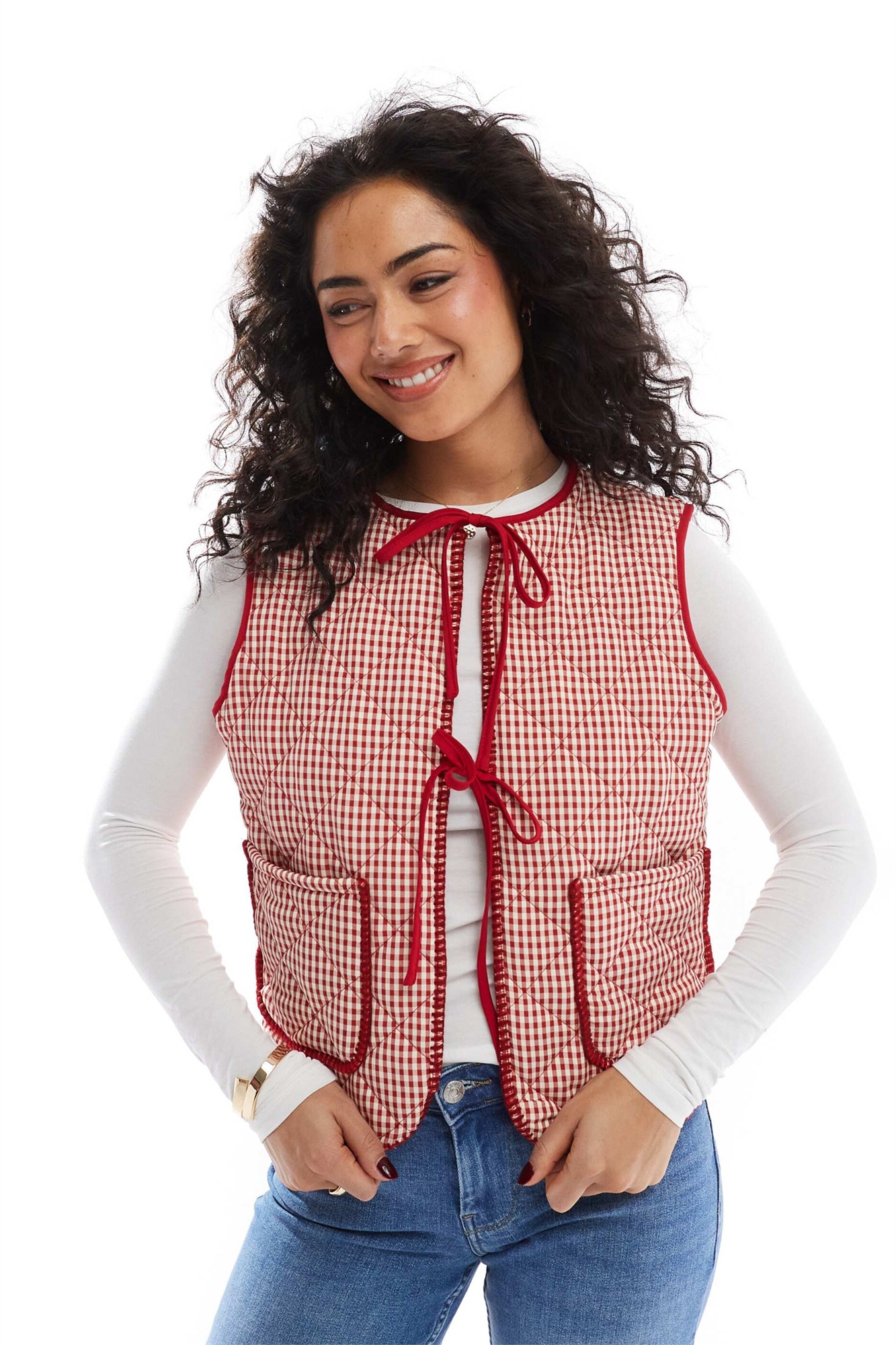 Стеганый жилет из красной клетчатой ткани