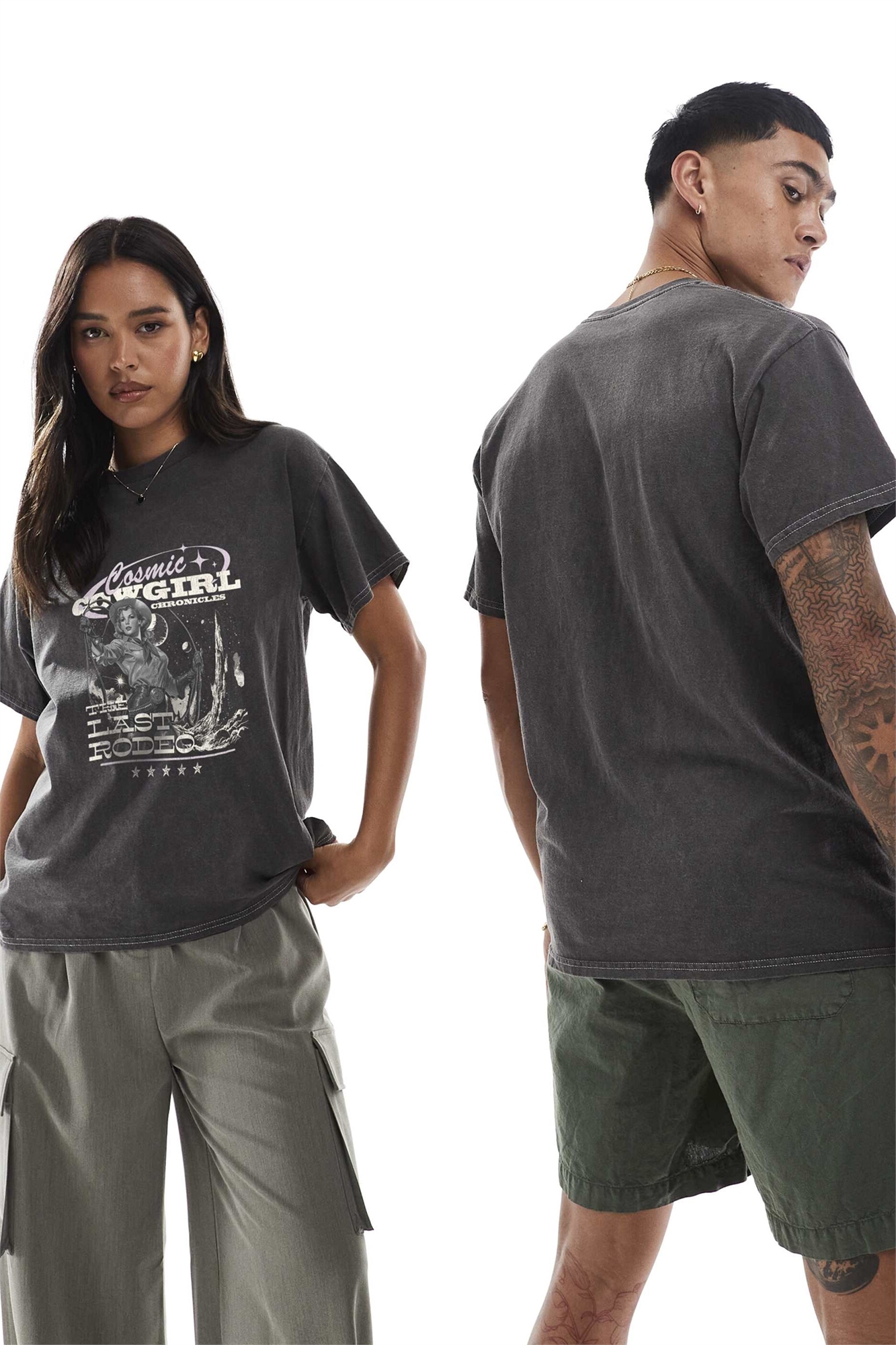 Футболка с принтом «Космическая ковбойша» на груди, обработанная специальной технологией