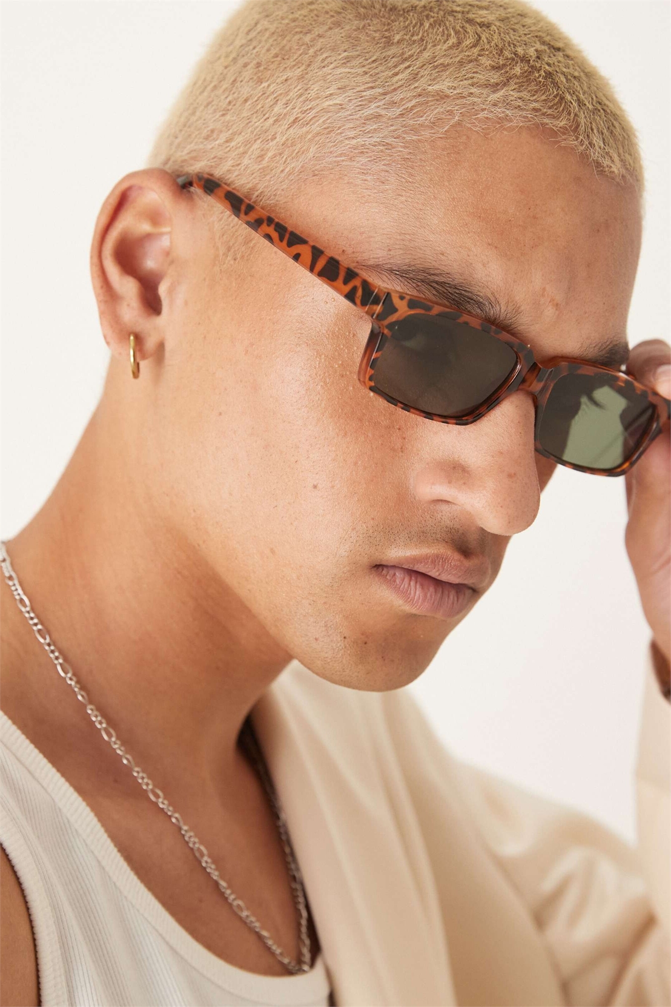 Очки прямоугольной формы с линзами зеленого дымчатого оттенка и оправой под черепаху