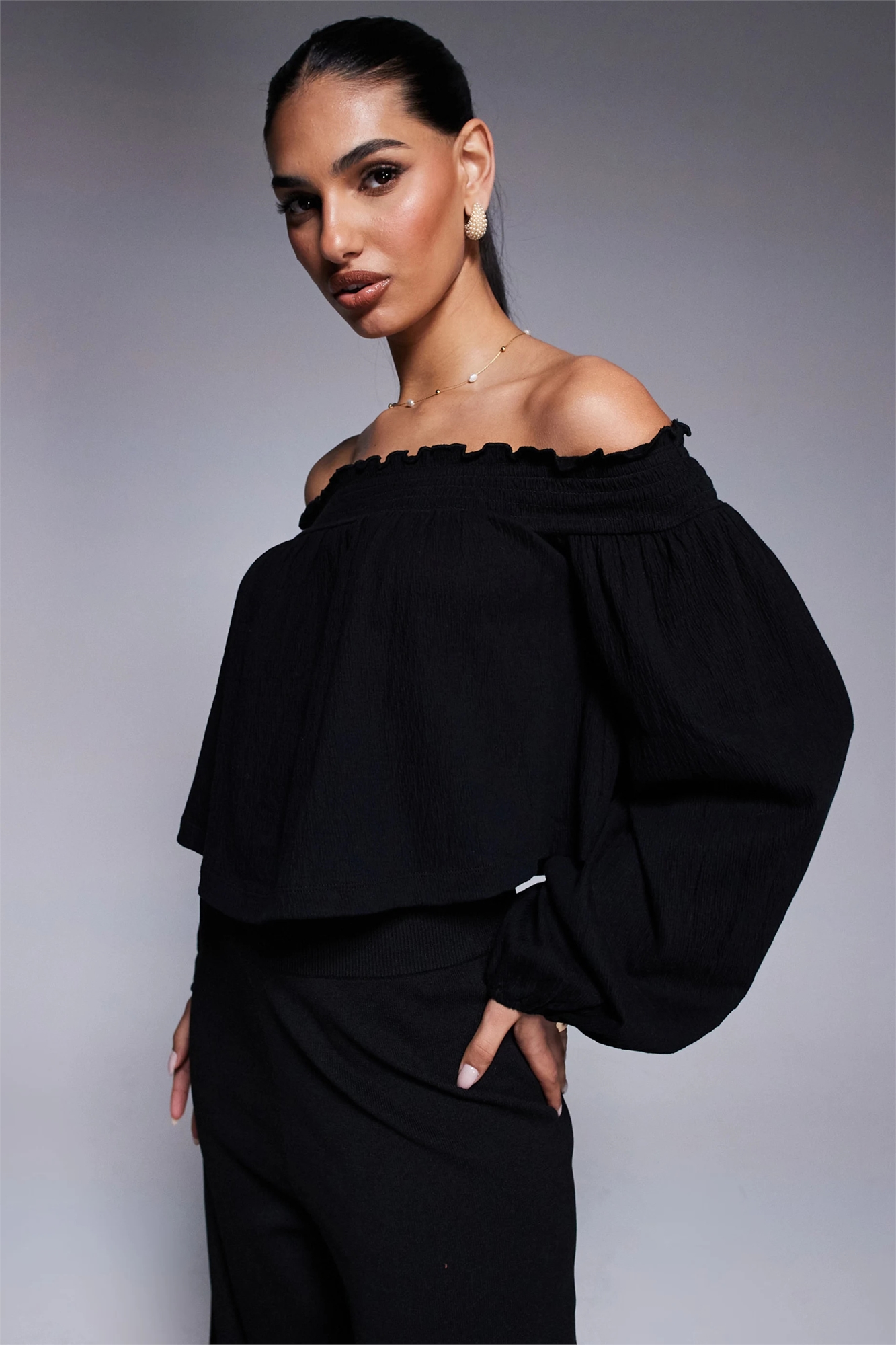 Топ с открытыми плечами и рукавами-балонами из гофрированной ткани