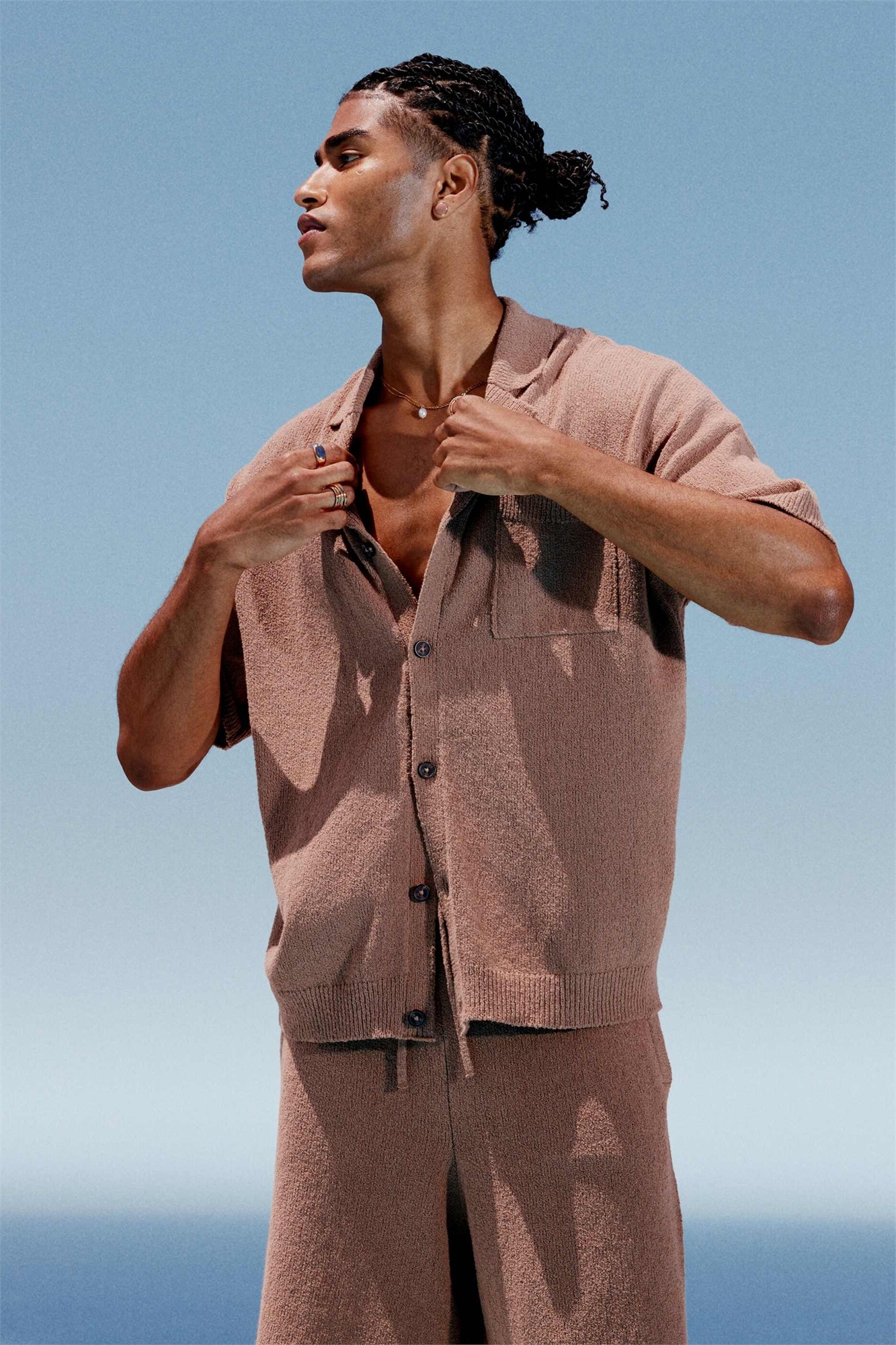 Свободный трикотажный свитер с фактурной текстурой и застежкой на пуговицы co-ord
