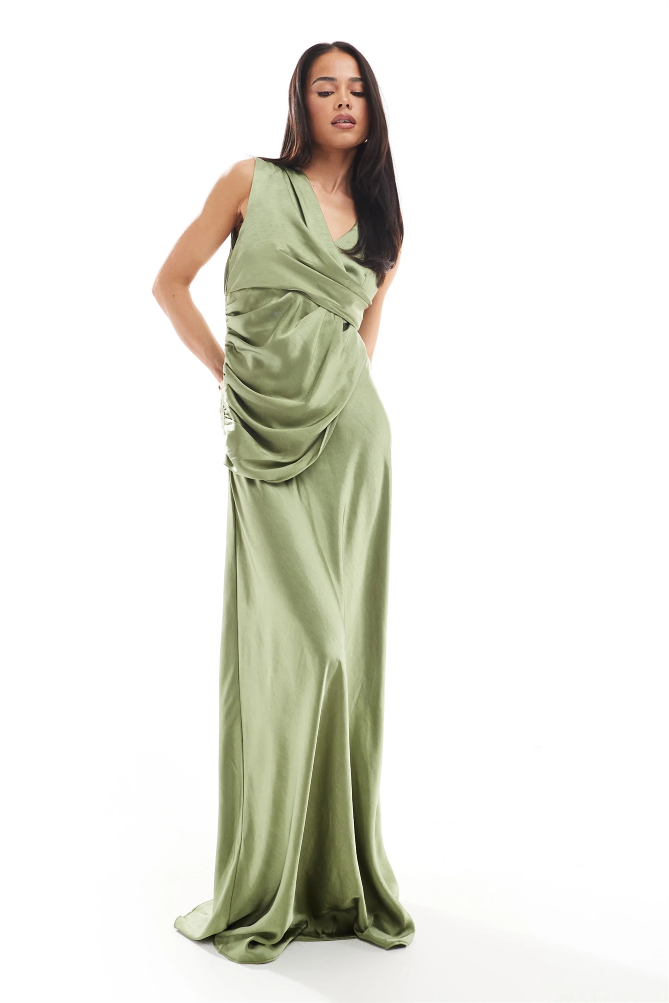Макси-платье из атласа с драпировкой и накладкой для подружки невесты