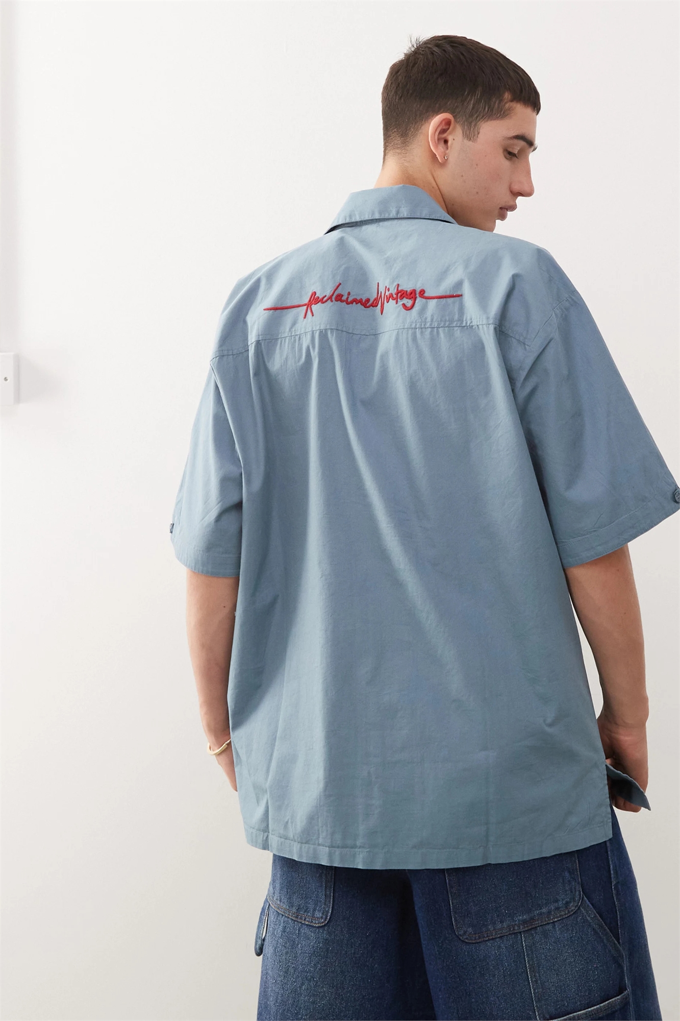 Рубашка прямого кроя с короткими рукавами и вышивкой на спине