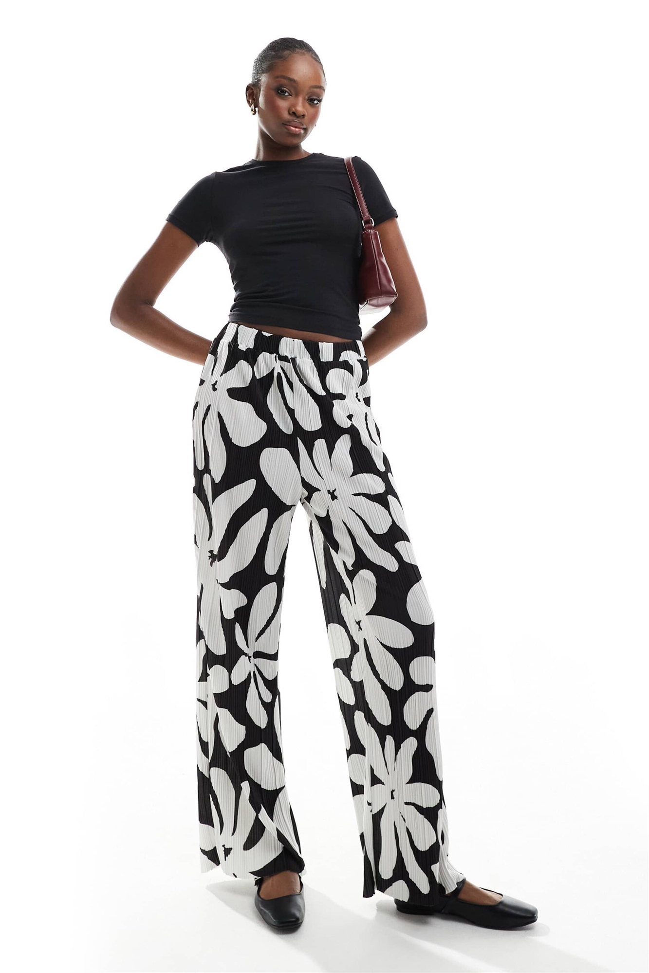 Брюки с высокой талией и широкими брючинами в плиссе
